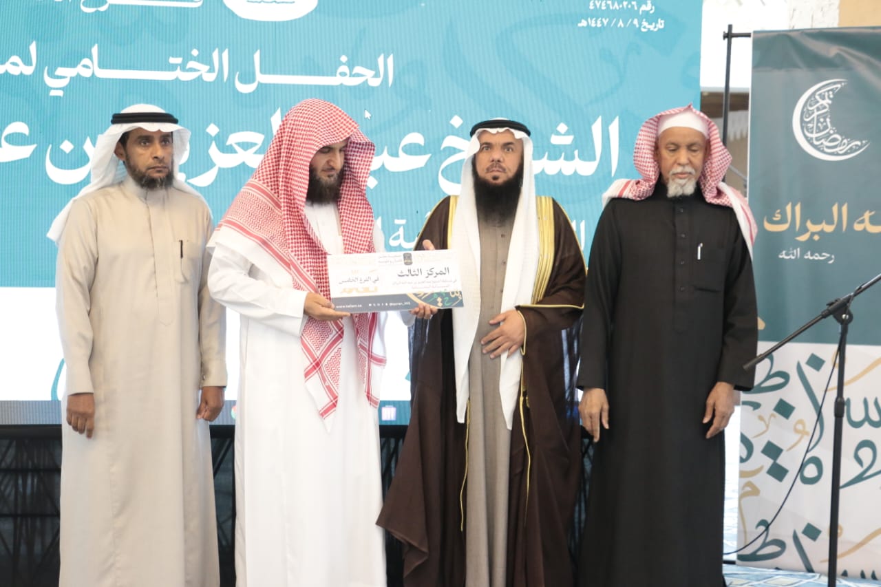 اختتم فرع الخرج مسابقة الشيخ عبدالعزيز بن عبدالله البراك – رحمه الله – لحفظ القرآن الكريم، وذلك في الحفل الذي أُقيم بحضور مساعد الرئيس التنفيذي لجمعية تعلّم الشيخ عبدالرحمن المزروع، ورئيس اللجنة الاستشارية لفرع الخرج الشيخ عبدالله الدهيمي، وأبناء الشيخ عبدالعزيز البراك يتقدمهم الأستاذ منصور البراك.