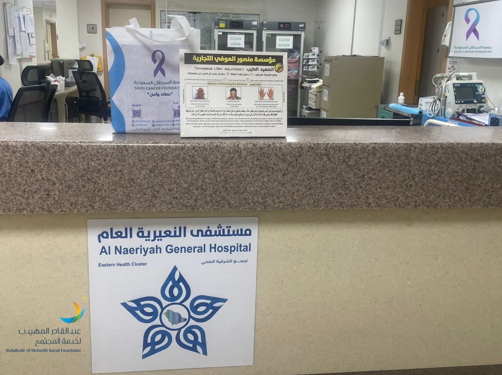 أعلنت جمعية السرطان السعودية عن تنفيذ مبادرة نوعية بالتعاون مع مؤسسة عبدالقادر المهيدب لخدمة المجتمع استهدفت تزويد المرضى بـ "وحدة التيمم" وهي عبارة عن أداة متكاملة ومجهزة للاستخدام في مختلف مستشفيات المنطقة الشرقية