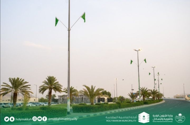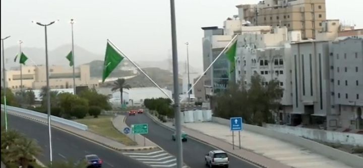اعلام الوطن ترفرف عاليا وتزين شوارع وميادين العاصمة المقدسة