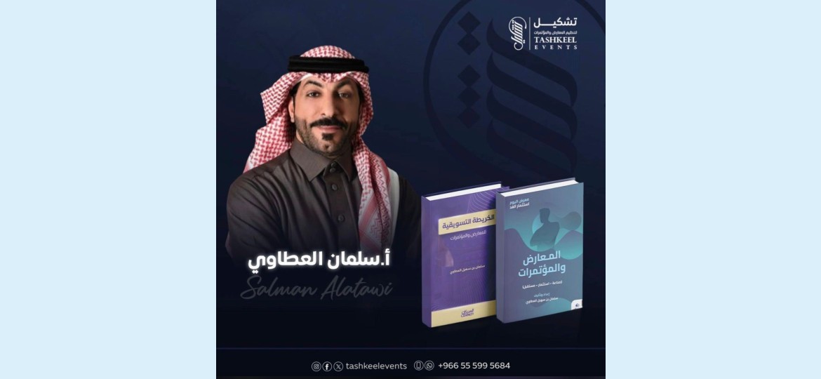 في خطوة تعكس تنامي الاهتمام بالمحتوى المتخصص في صناعة المعارض والمؤتمرات، أطلق الكاتب سلمان العطاوي إصداراته الجديدة، التي تم تدشينها وطرحها للبيع عبر مكتبة العبيكان في الرياض، لتكون متاحة أمام القراء والمهتمين بهذا القطاع الحيوي.