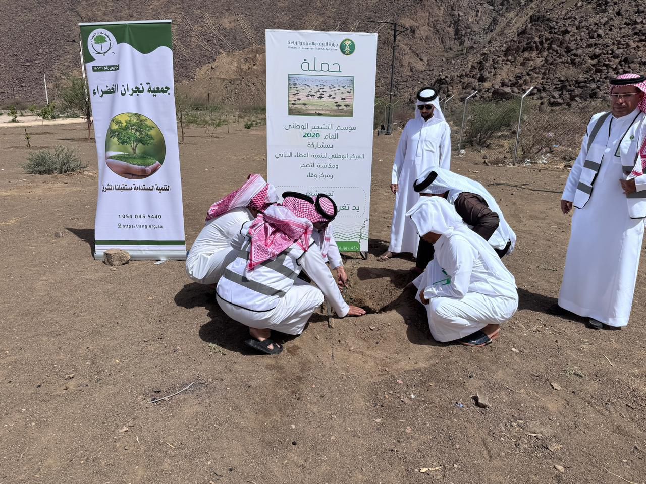 ضمن مبادرات السعودية الخضراء، نفّذ مكتب وزارة البيئة والمياه والزراعة بمحافظة حبونا، بالتعاون مع بلدية حبونا وجمعية نجران الخضراء، اليوم الأربعاء الموافق 2026/4/1، مبادرة تشجير في حديقة بلدية حبونا، وذلك بحضور ممثلين من فرع الوزارة بمنطقة نجران ومن البلدية وجمعية نجران الخضراء، إضافةً إلى عدد من المهتمين بتنمية الغطاء النباتي.