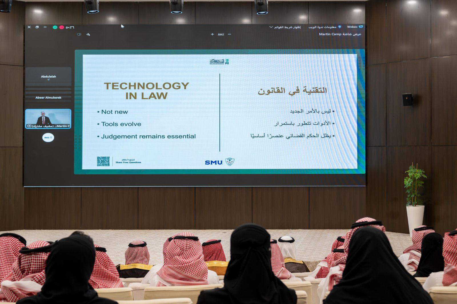 وتمحورت نقاشات الورشة، التي قُدّمت عبر الاتصال المرئي، بحضور عددٍ من الكوادر القضائية والتقنية والإدارية في ديوان المظالم، حول دور الذكاء الاصطناعي في حوكمة وتحول الأنظمة القضائية، واستخداماته في المحاكم ولدى صُنّاع القرار القضائي، إلى جانب إمكانات الاستفادة منه في تطوير إجراءات التقاضي، وآليات تنظيم استخدامه ومخاطره المحتملة، ودلائل التحيّز فيه، كما أشاد البروفيسور كامب خلال حديثه بما اطّلع عليه من استخدامات التقنيات والذكاء الاصطناعي في المملكة وقطاعاتها العامة، وديوان المظالم على وجه الخصوص، مشيرًا إلى استخدامه عددٍ من البرامج التي تخدم إجراءات التقاضي بشكل مباشر.