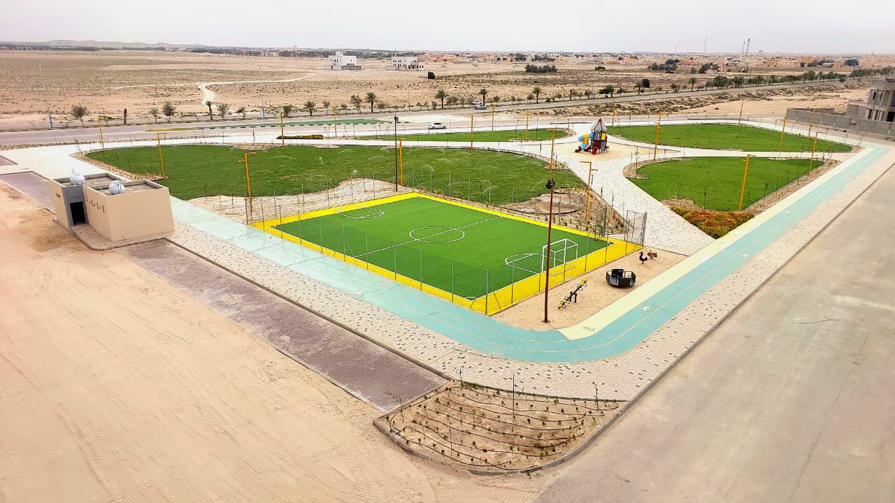 كما يتضمن المشروع إنشاء ممرات مشاة بطول (500) متر طولي وتركيب (20) عمود إنارة لتعزيز السلامة العامة إضافة إلى إنشاء ملعب كرة قدم بمساحة (600) متر مربع وتوفير (20) موقفًا للسيارات لخدمة مرتادي الحديقة ودورة مياه عمومية.