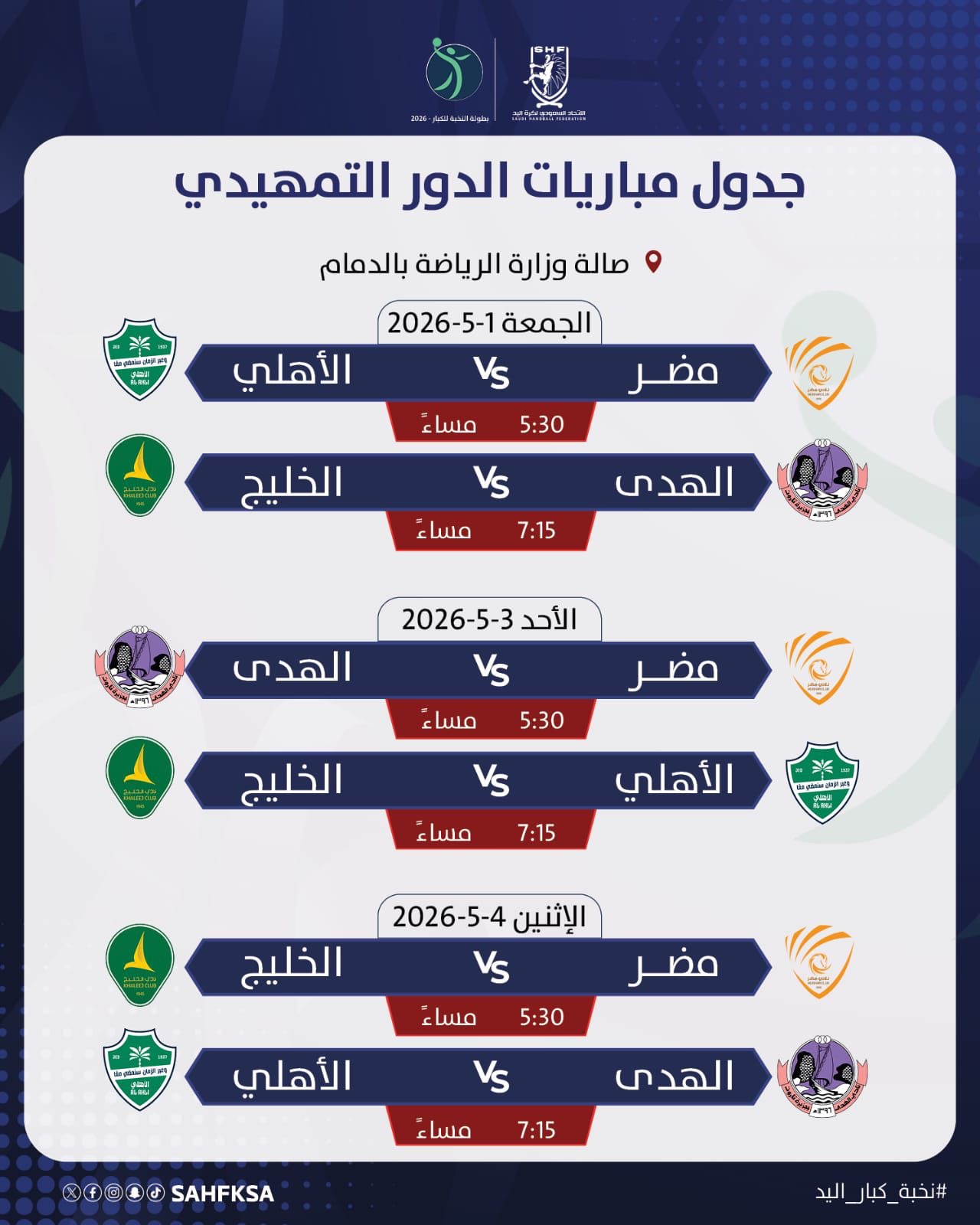 أصدر الاتحاد السعودي لكرة اليد جدول مباريات الدور التمهيدي من بطولة النخبة لكرة اليد للموسم الرياضي 2025–2026م، في نسختها الرابعة والعشرين، وذلك عقب إجراء مراسم القرعة التي أُقيمت مساء اليوم الأحد 26 أبريل 2026م عن بُعد، بحضور ممثلي الأندية المشاركة.