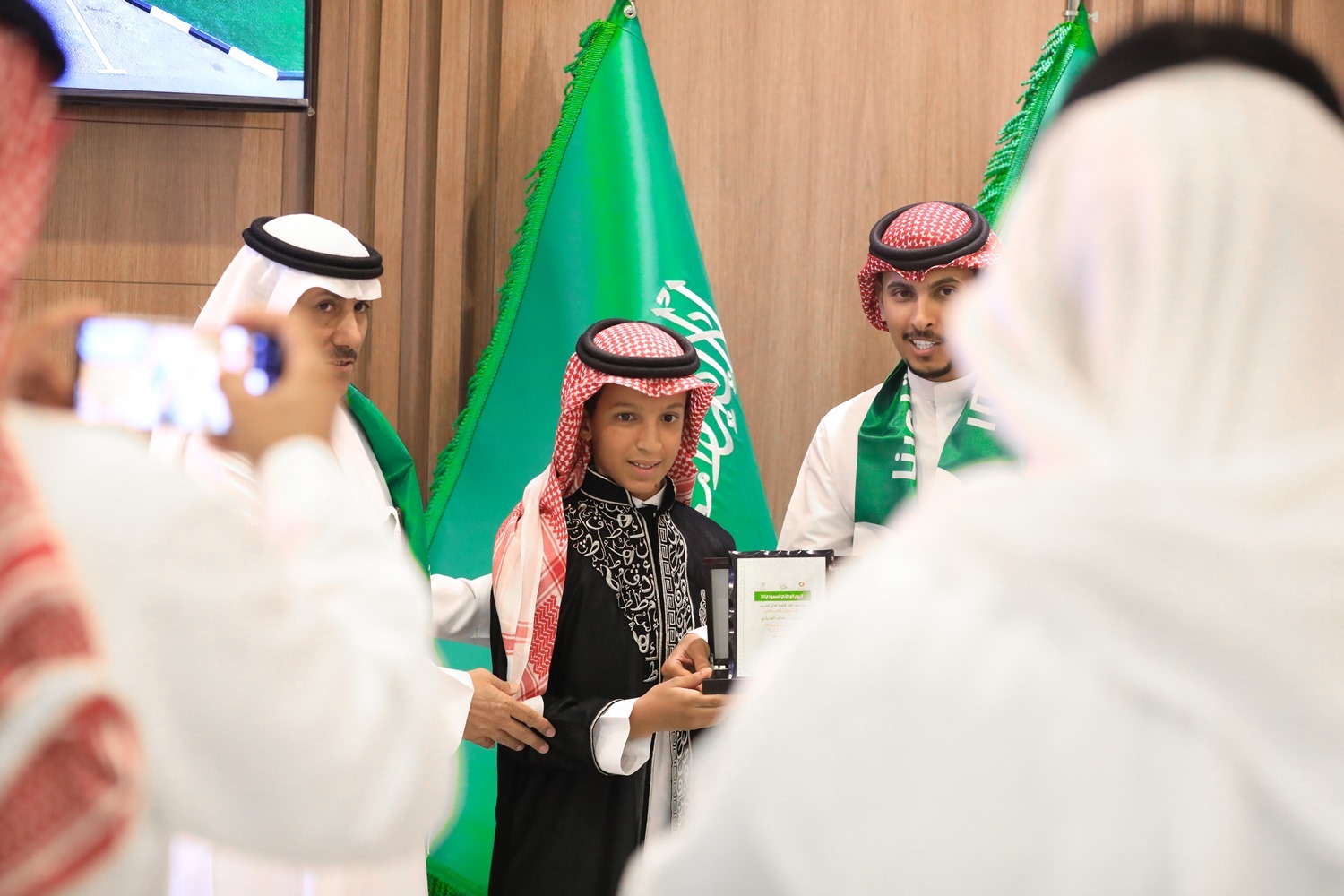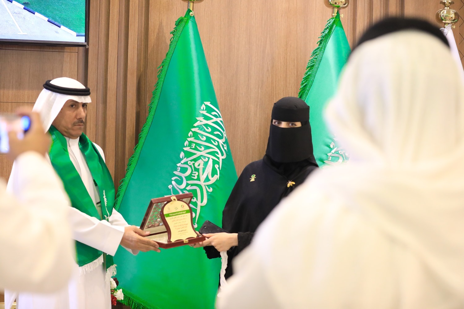 كما شاركت الفنانة التشكيلية وجدان العريض بلوحة فنية لسمو ولي العهد رسمتها على سجادة بطول 2 متر وعرض 1:20 متر، وفي الختام تم تكريم المشاركين في الحفل والتقطت الصور التذكارية.
