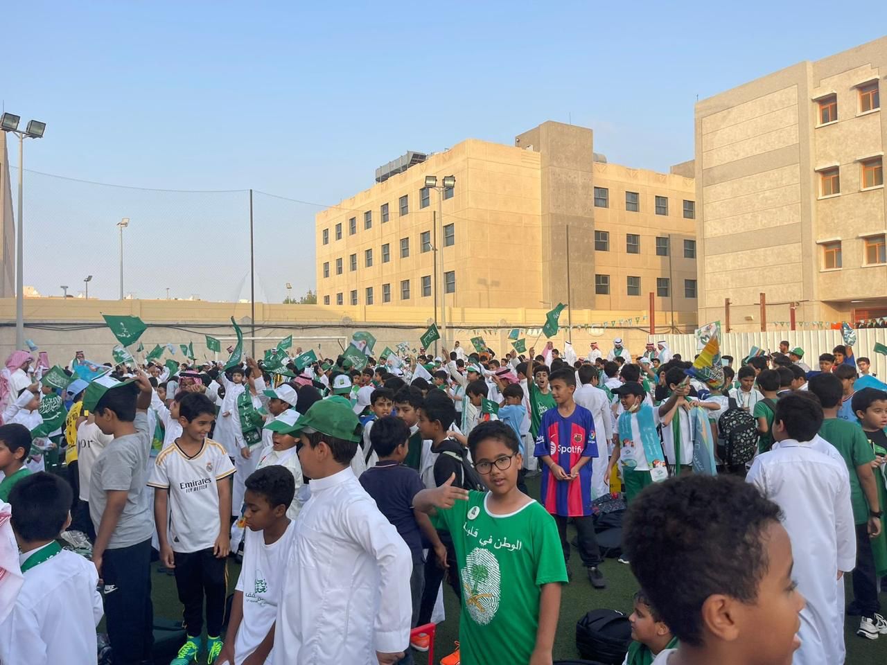 وقدم طلاب النشاط بمدرسة رافع بن عميرة الابتدائية، إذاعة مدرسية ومسيرة طلابية ودوري رياضي نفذه معلمو الرياضة.