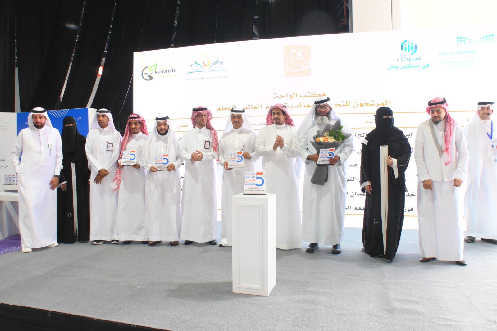 وفي الختام؛ تم تكريم شركة درعة للعطور ومطاعم القيميرية ومحلات عبارة للزهور وحلويات أندي وداني ومطاعم الرومانسية مضياف، ورخاخ ديزاين وشركة نيلوفر للتجارة، وجمعية غدي لتأهيل وتدريب الأطفال ذوي الإعاقة وحلويات لاديراخ والراعي المكاني شركة فن المكاتب وذلك على دعمهم لأنشطة الجمعية، إضافة إلى مقدم الحفل محمد البكر وعدٍد من منسوبي الجمعية ثم ألتقط الجميع صور تذكارية بهذه المناسبة.
