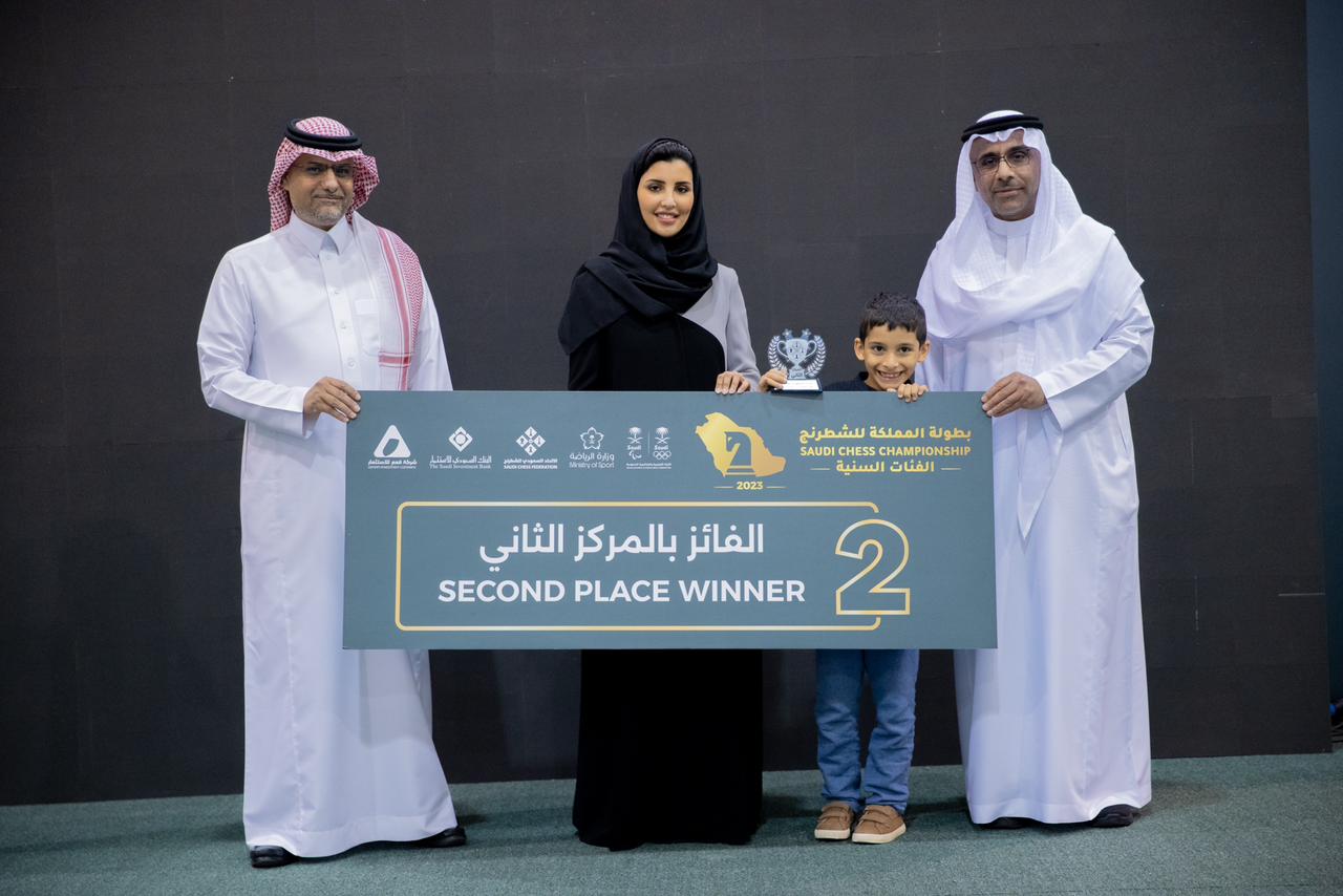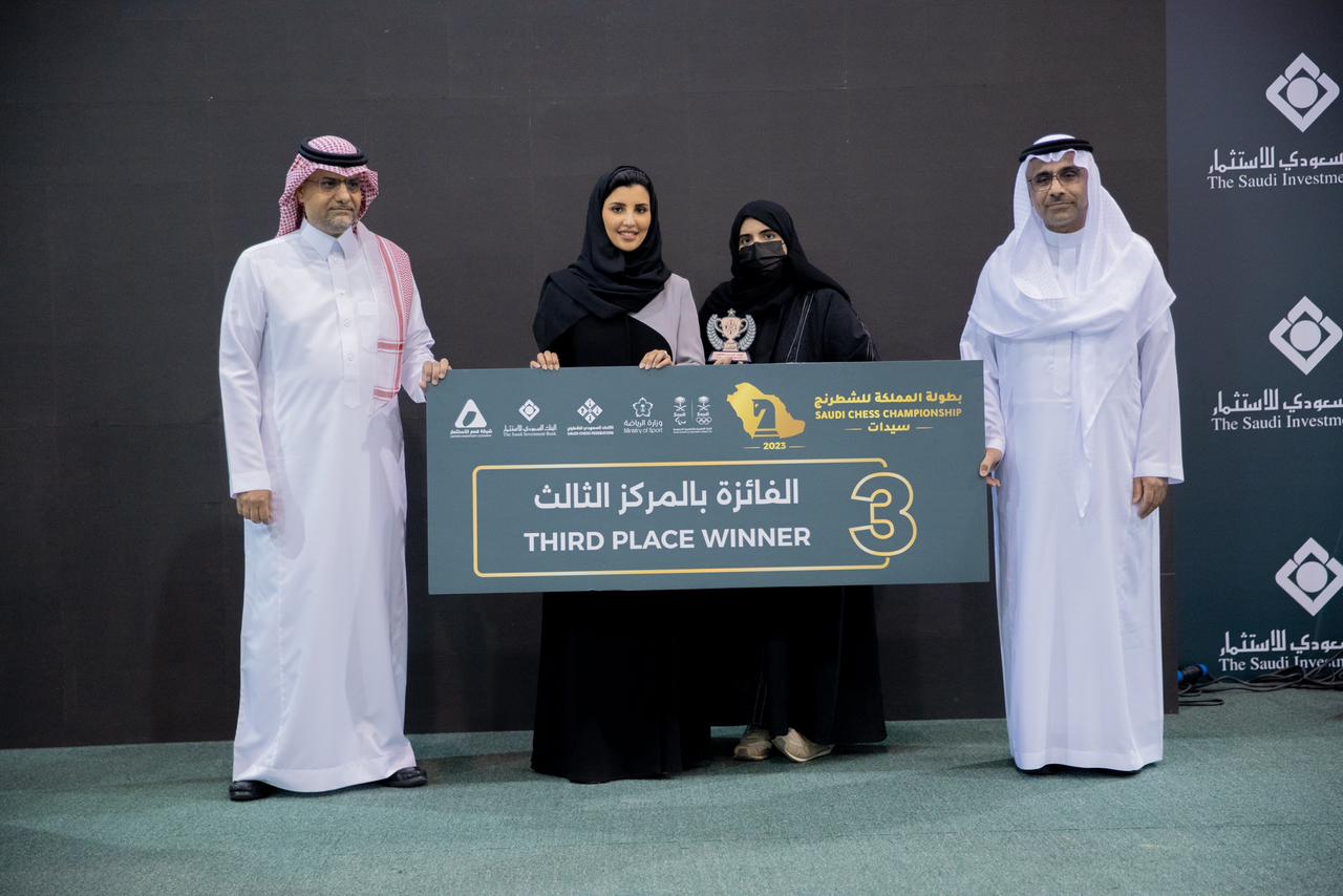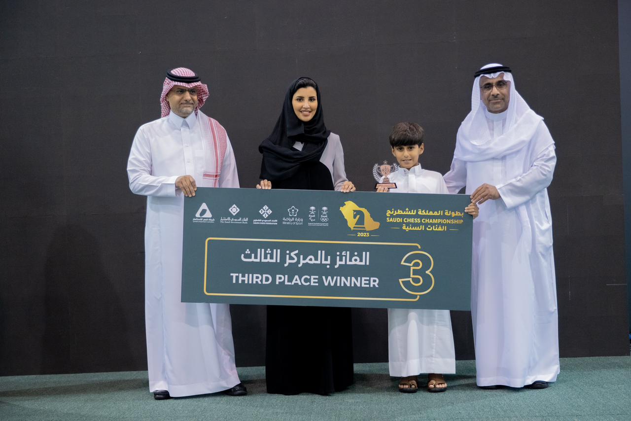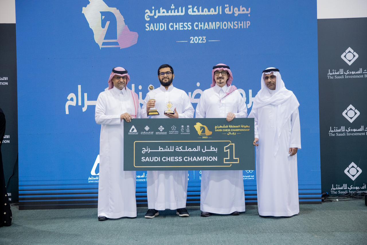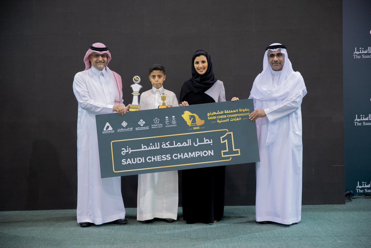 بحضور الوكيل المساعد لوزارة الرياضة لشؤون الرياضة عبدالعزيز العنزي، ورئيس الاتحاد السعودي للشطرنج عبدالله بن سالم الوحشي، وصاحبة السمو الأميرة أريج بنت فيصل ال سعود، ورئيس المؤسسات العامة بالبنك السعودي للاستثمار طلال الحايك، اختتمت فعاليات بطولة المملكة للشطرنج والتي أقيمت على مدار 7 أيام في الصالة البارالمبية بالرياض لثلاث فئات هي الرجال والسيدات والفئات السنية.