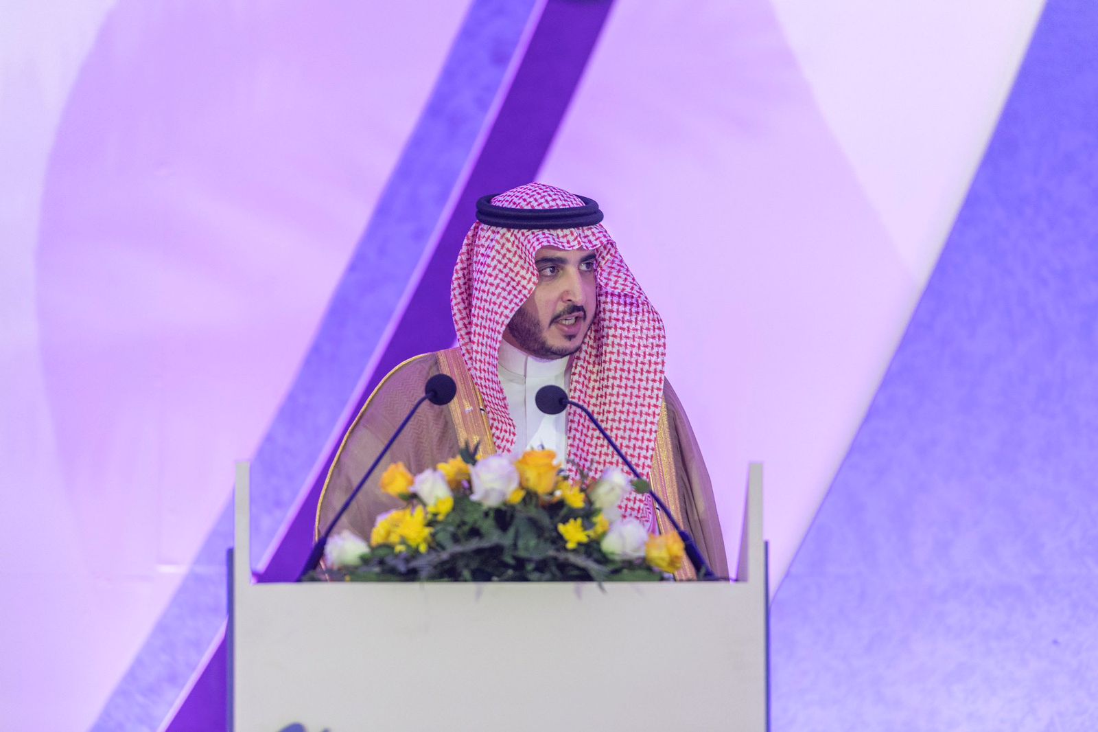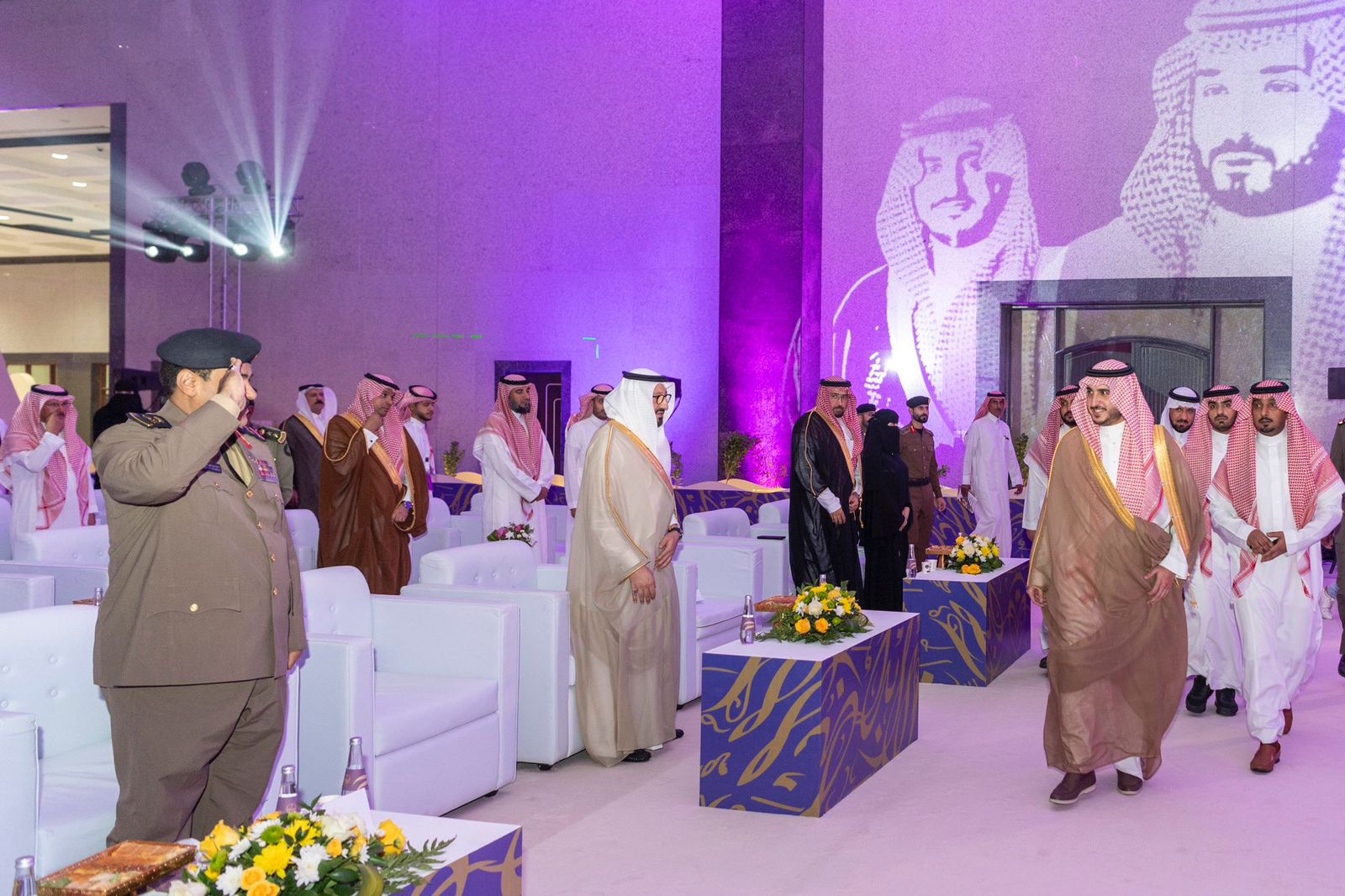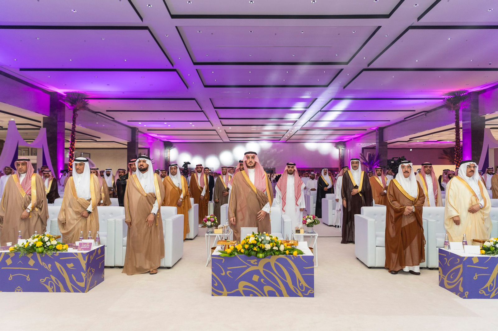 وعند وصول سموه مقر الحفل تجوّل في منصة الفائزين والفائزات، بعدها عزف السلام الملكي وانطلقت فقرات الحفل بتلاوة آيات من القرآن الكريم.