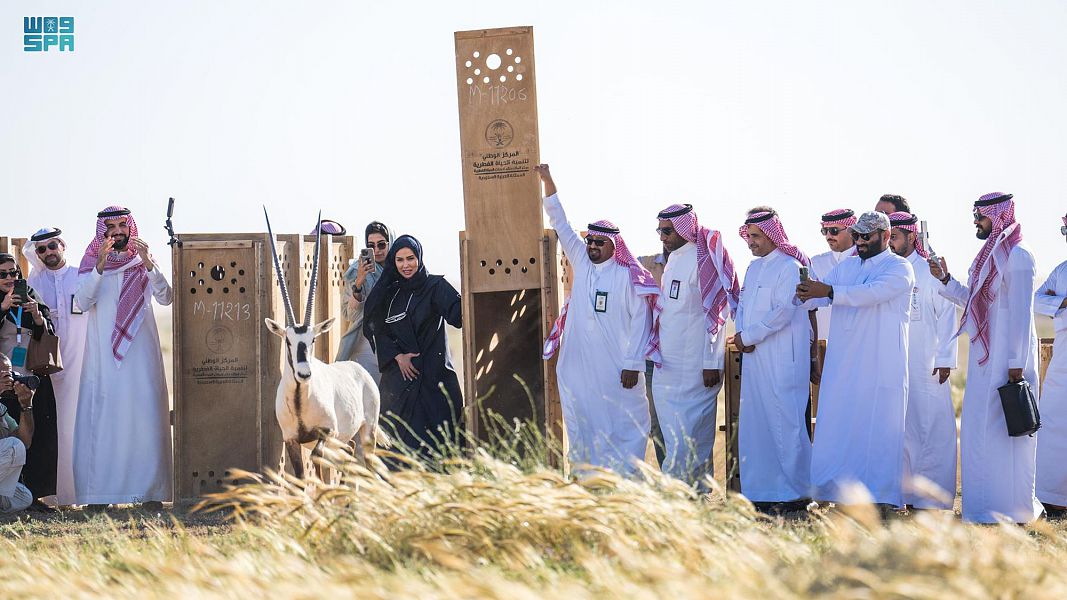 وجرى - خلال الفعالية- التجوُّل في أرجاء المحمية والاطلاع على أنشطة مشغلي السياحة البيئية، بالإضافة إلى إطلاق (40) كائنًا فطريًّا تنوَّعَت بين غزال الريم والمها العربي كجزء من جهود الهيئة والمركز الوطني لتنمية الحياة الفطرية الرامية إلى إعادتها لبيئتها الطبيعية في محمية الملك خالد الملكية.