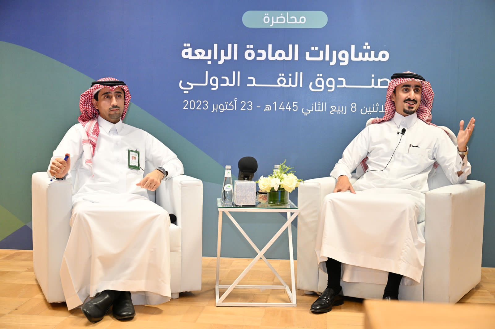 نظم مركز التواصل والمعرفة المالية (متمم) اليوم الاثنين 8 ربيع الآخر 1445هـ الموافق 23 أكتوبر 2023م محاضرة متخصصة عن "تقرير مشاورات المادة الرابعة الصادر من خبراء صندوق النقد الدولي" استهدفت طلبة جامعة الملك سعود، وذلك بمسرح كلية إدارة الأعمال بمقر الجامعة في الرياض. وسلطت المحاضرة، التي قدمها وكيل وزارة المالية للعلاقات الدوليةالدكتور رياض الخريف، الضوء على العلاقة بين المملكة والصندوق والقائمة على سعي المملكة المستمر لدعم منظومة التعاون الاقتصادي العالمي وتبادل الخبرات بين الدول، كما تم تقديم نبذة تعريفية عن مشاورات المادة الرابعة وأهدافها وأثرها على واقع المملكة الاقتصادي.