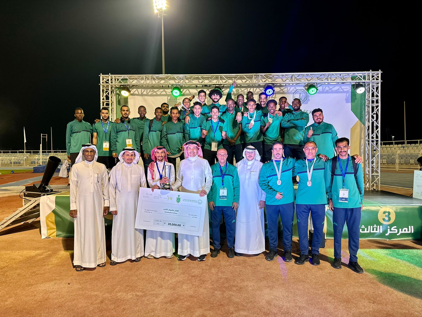 المركز الاول جامعة الامام عبدالرحمن بن فيصل وفي المركز الثاني منتخب المؤسسة العامة للتدريب التقني والمهني وجاءت جامعة الملك سعود في المركز الثالث .