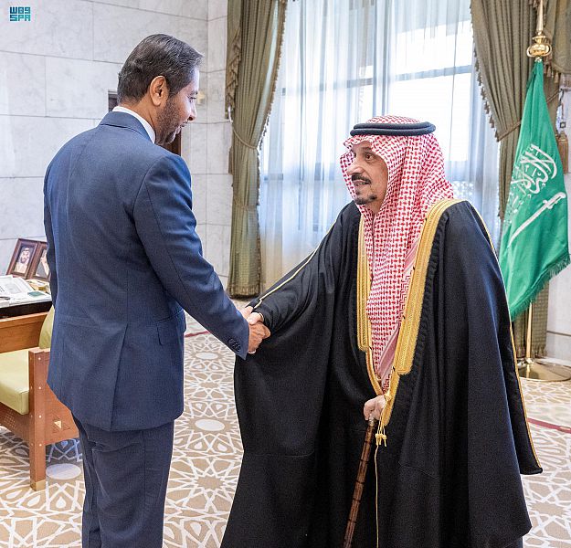 استقبل صاحب السمو الملكي الأمير فيصل بن بندر بن عبدالعزيز أمير منطقة الرياض في مكتبه بقصر الحكم اليوم عميد السلك الدبلوماسي سفير جمهورية جيبوتي لدى المملكة ضياء الدين سعيد بامخرمة ورؤساء المجموعات الجغرافية المعتمدين لدى المملكة.