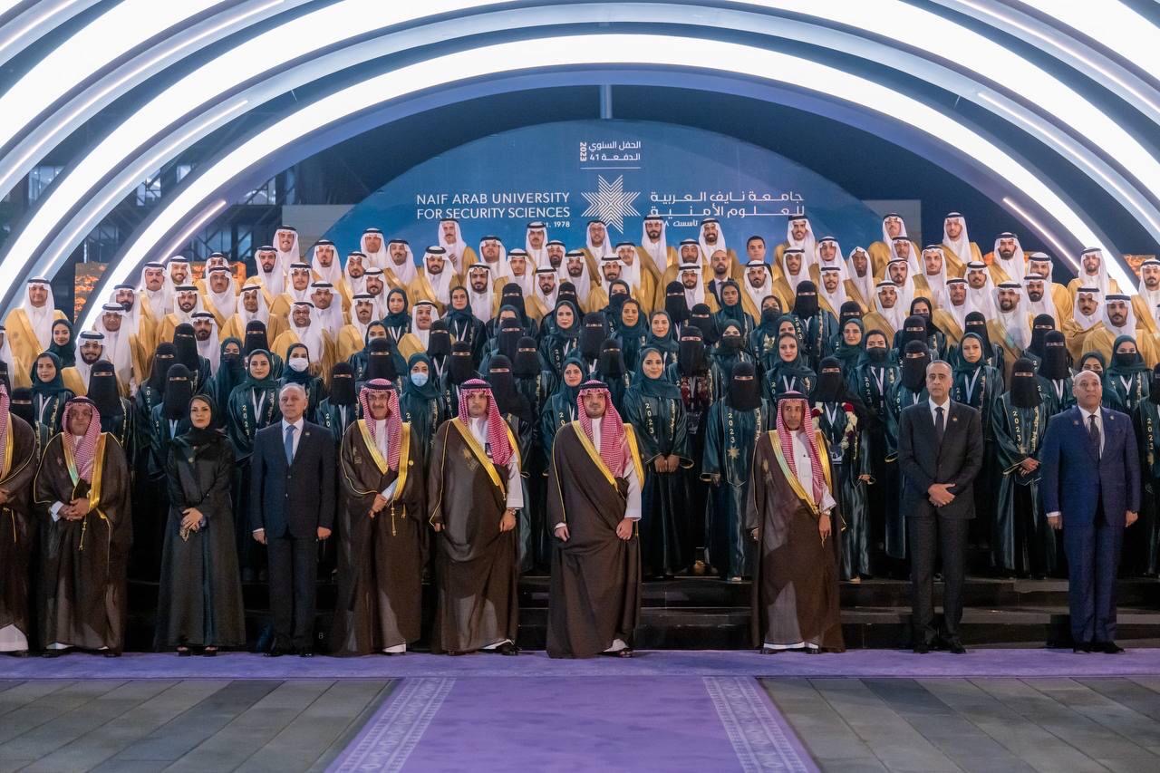 رعى صاحب السمو الملكي الأمير عبدالعزيز بن سعود بن نايف بن عبدالعزيز وزير الداخلية رئيس المجلس الأعلى لجامعة نايف العربية للعلوم الأمنية، اليوم، الحفل السنوي للجامعة، وتخريج 223 طالباً وطالبة من الدفعة 41، وذلك بمقر الجامعة في مدينة الرياض.