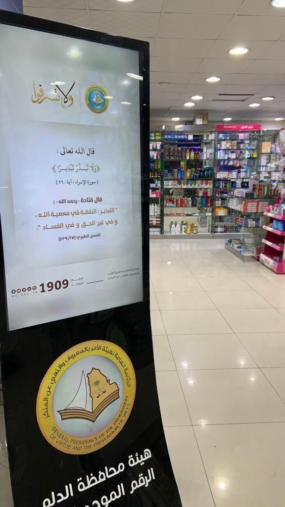 من جانب آخر، نشرت هيئة محافظة حوطة بني تميم، رسائل توعوية عن البرنامج التوعوي والوقائي "ولا تسرفوا" للتحذير من التبذير مدعم بالأدلة الشرعية والأحاديث النبوية وأقوال السلف الصالح، بالتعاون مع مستشفى المحافظة العام، وكلية إدارة الأعمال، عبر الشاشات الرقمية واللوحات التوعوية.