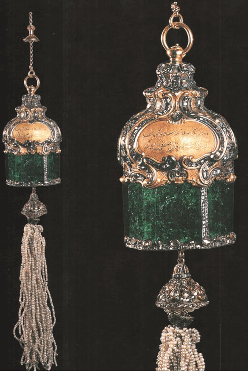 تعليقة من التحف النادرة من الذهب ومئات الألماسات والحجارة الكريمة وحبال اللؤلؤ النادرة في الوانها واحجامها. ." الكوكب الدري، د. حاتم عمر طه".