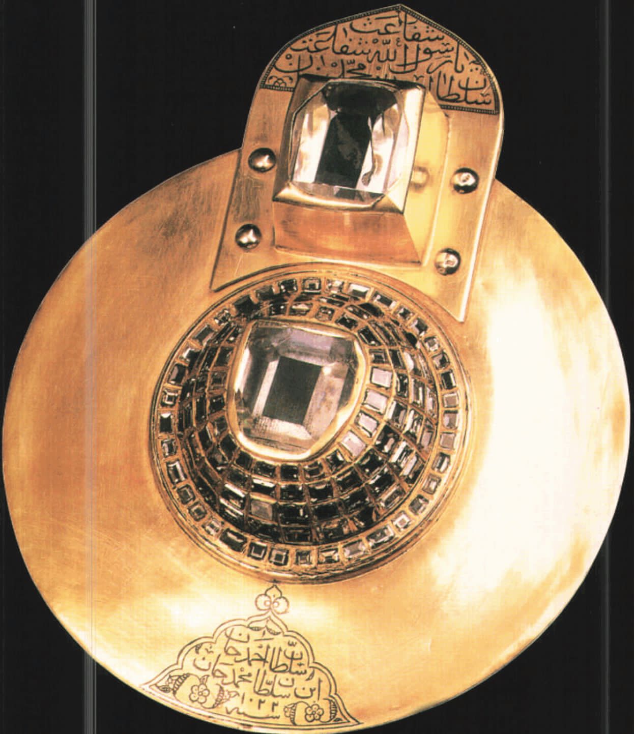 "الكوكب الدري " في الأعلى كتب عليها "شفاعة يارسول الله، شفاعت سلطان أحمد ابن خان" وفي وسط هذه اللوحة قطعة من الألماس، مربعة الشكل