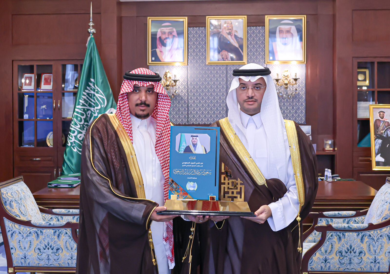 استقبل صاحب السمو الملكي الأمير سعود بن طلال بن بدر محافظ الأحساء ، بمكتب سموّه بمقر المحافظة “ اليوم الاثنين “ رئيس مجلس إدارة نادي الجيل الرياضي الأستاذ عمر بن مبارك بوعركة يرافقه أعضاء مجلس الإدارة.