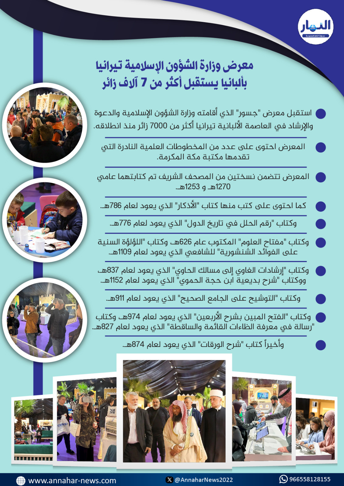 يذكر أن هذه النسخة من معرض "جسور" هي النسخة الثانية، وتستمر حتى الـ 24 من نوفمبر الجاري، حيث أقامت وزارة "الشؤون الإسلامية" العام الماضي النسخة الأولى في العاصمة التايلندية بانكوك.