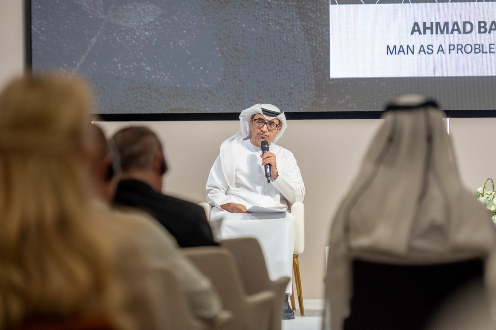 ناقش الدكتور أحمد البرقاوي قضية الإنسان بوصفه مشكلة في الواقع المعيش وطرح العديد من التساؤلات، ما معنى أن يكون الإنسان مشكلة ؟ ونحن نعلم أن المشكلة سؤال ينطوي على عدة اسألة ،هل من الحكمة أن نتحدث عن الخطر الذي يعيشه الإنسان قي عالمنا العربي مثل العالم الأوروبي ؟ كيف يستطيع الإنسان أن يستعيد سلطته ؟ ماذا يعني لنا الاغتراب ؟ التقنية وما انتجته من مخاطر للإنسان ؟ والعديد من التساؤلات والقضايا الذي أجاب عنه خلال ندوته وتحاوره مع الحضور .