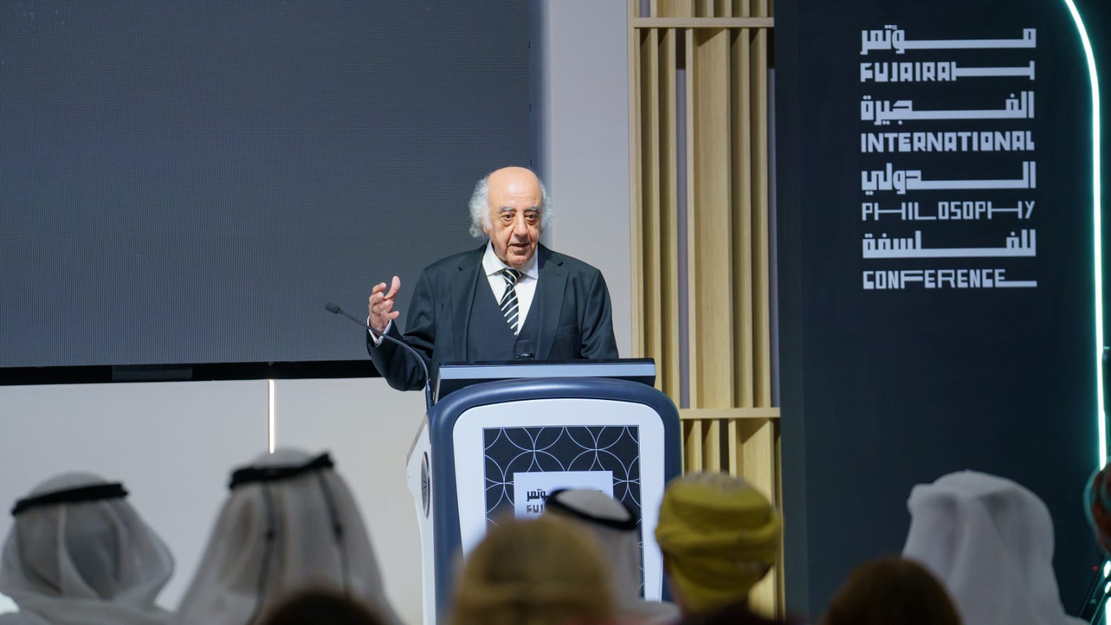 و أشاد بجهود بيت الفلسفة بالفجيرة لفتح آفاق متجددة للحوار الإنساني الذي يمدّ جسور المعرفة والتفكير والتعقّل، متمنيًا للمؤتمر وللمشاركين فيه تحقيق أهدافه المرجوّة..