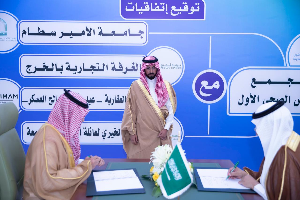 وقد وقع الرئيس التنفيذي لتجمع الرياض الصحي الأول الدكتور صالح التميمي مع كل من الأستاذ الدكتور عبد الرحمن الطلحي رئيس جامعة الأمير سطام بن عبدالعزيز، والاستاذ خالد العنقري النائب الثاني لرئيس غرفة الخرج، والأستاذ عبدالله العسكر رئيس مجلس إدارة شركة اهتمام العقارية ، والاستاذ محمد الجمعة ممثل الوقف الخيري لعائلة آل فواز وآل جمعة.