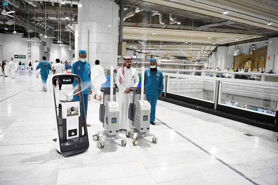 ووفّرت الرئاسة العديد من الروبوتات الذكية التي تقوم على خدمة المصلين والمعتمرين بالمسجد الحرام، منها "روبوت التعقيم" الذي يعمل على تعقيم جنبات المسجد الحرام، بنظام تحكم آلي مبرمج على خريطة مسبقة، وعلى (6) مستويات، مما يحسن سلامة الجو الصحي البيئي وتحليل متطلبات التعقيم بذكاء، وفقاً لسيناريوهات الاستخدام، ومسار التعقيم، والمدة المخططة بشكل مستقل لتغطية كاملة للفضاء البيئي.