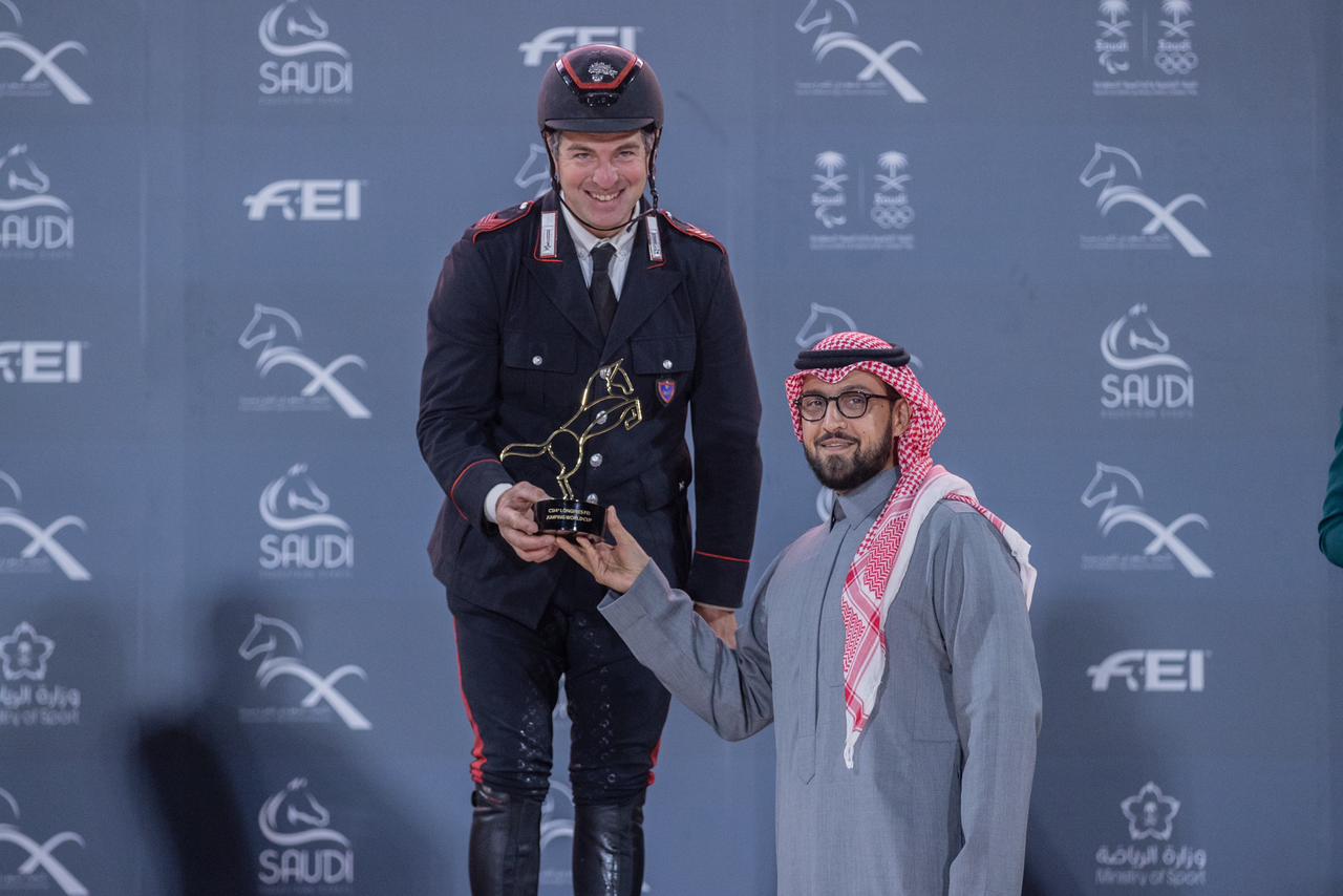 ونجح الفارس الإيطالي المصنف 27 عالمياً في خطف لقب الشوط الأهم في الأسبوع الأول لفئة (4 نجوم ـ ارتفاع 1.40 متر) بعد أن أنهى الشوط الرابع بزمن وقدره 41.72 ثانية، فيما حل الفارس المصري محمد زيادة الشهير باسم "مودا" في المركز الثاني بـ (44.58 ثانية)، وجاء ثالثاً الفارس السعودي خالد المبطي (48.45 ثانية).