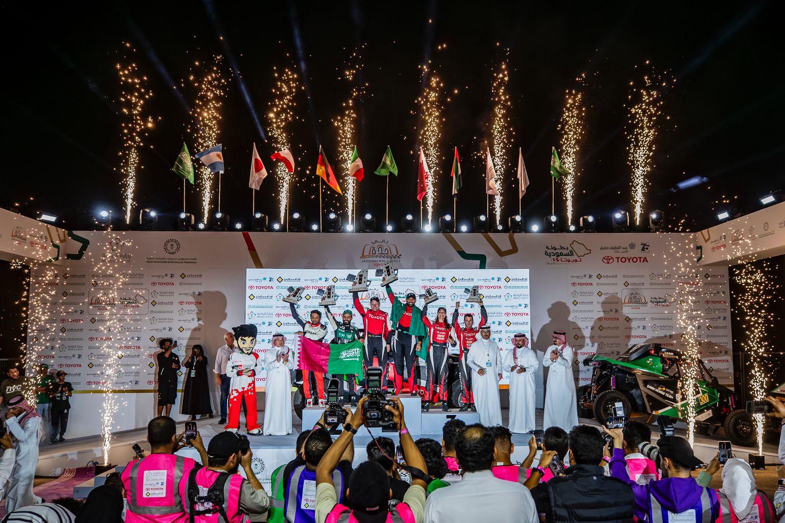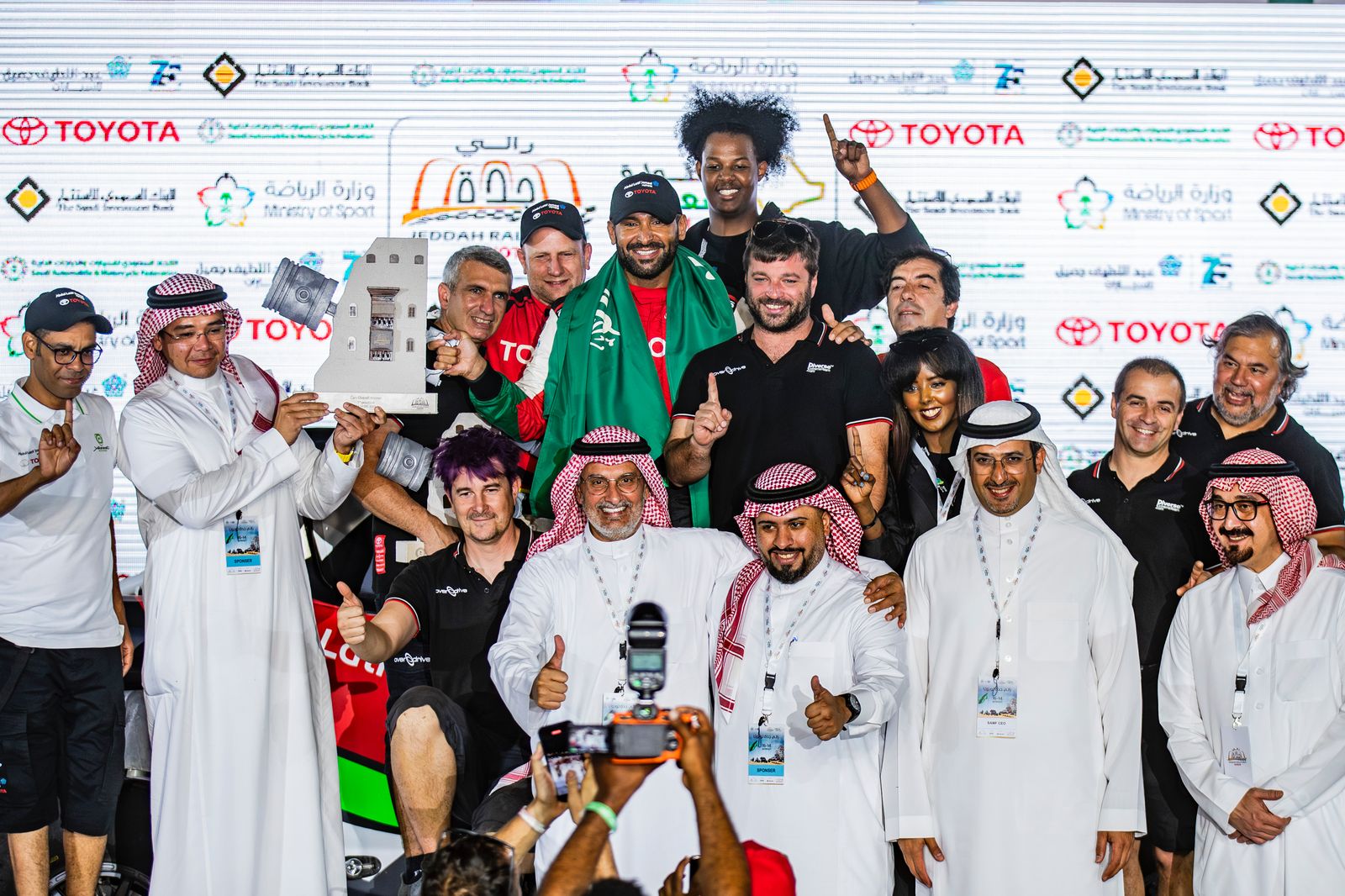 وقال: "كما أوجه شكري الخاص للشريك الاستراتيجي والوكيل الحصري لشركة تويوتا اليابانية العالمية للسيارات في المملكة العربية السعودية، شركة عبد اللطيف جميل للسيارات على دعمهم ورعايتهم لي في مشاركاتي المحلية والعالمية."