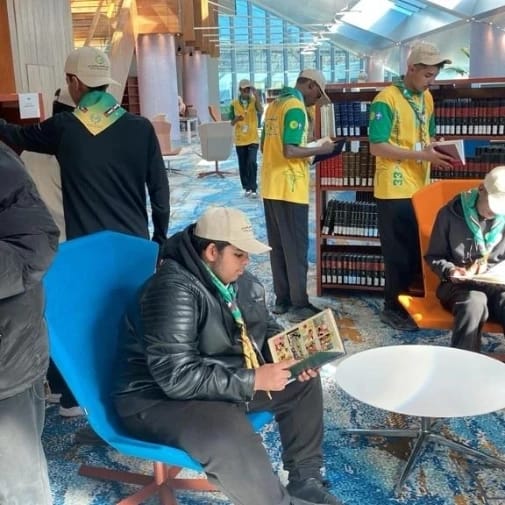 كما شارك الوفد في ورشة اللغة العربية والخط العربي التي نظمتها قيادة المخيم أمس بمناسبة اليوم العالمي للغة العربية الذي يحتفي العالم به في الثامن عشر من ديسمبر من كل عام حيث قدمت بعض الفعاليات والبرامج والأنشطة لإذكاء الوعي بتاريخ اللغة العربية وثقافاتها وتطورها، وشارك الوفد في الرحلة الخلوية التي تضمنها برنامج المخيم.