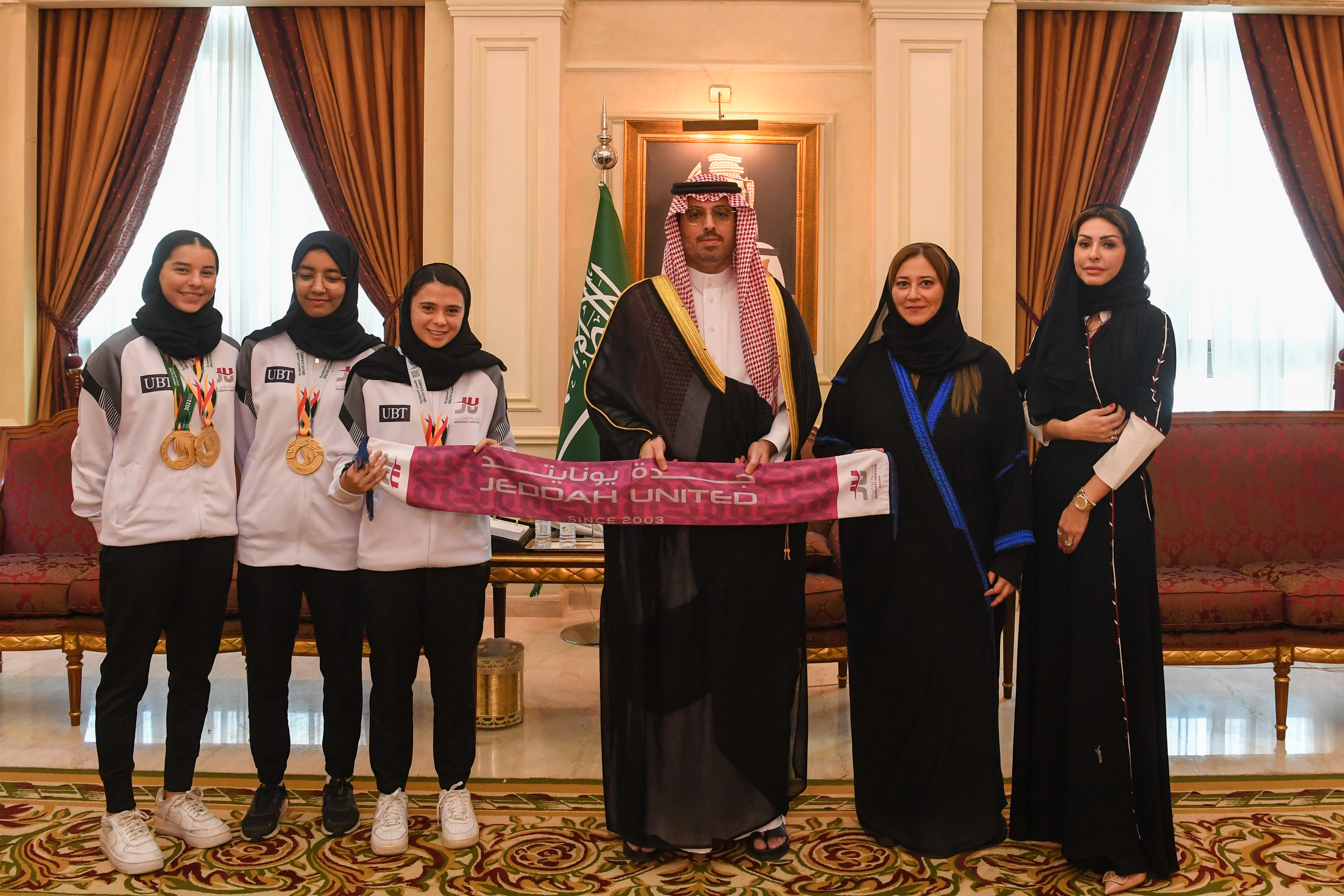 استقبل صاحب السمو الأمير سعود بن عبدالله بن جلوي محافظ جدة, في مقر المحافظة اليوم، الأبطال الفائزين بالميداليات في دورة الألعاب السعودية 2023 من أندية الأهلي، والاتحاد، وجدة يونايتد، ونادي الصم بجدة، ونادي ذوي الإعاقة بجدة، بحضور مدير فرع وزارة الرياضة بمنطقة مكة المكرمة عبدالعزيز بن عبود ورؤساء ومنسوبي الأندية.