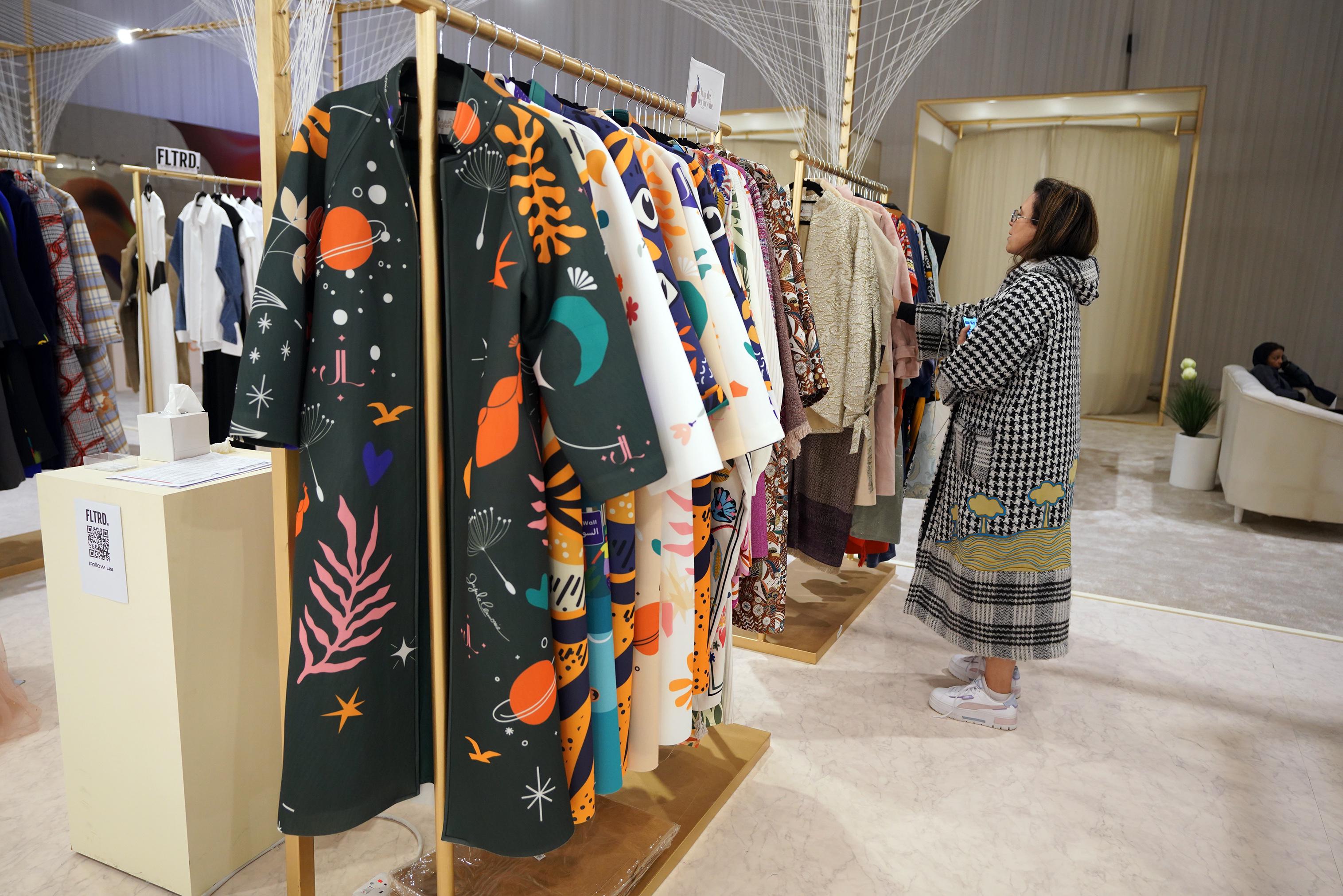 ولا تكتمل تجربة زيارة الجناح المصري في معرض "أنا عربية" دون الوقوف عند الأزياء المنسوجة من الخامات المصرية، انفردت الأزياء بتنوعها في الملمس والألوان، حيث استعرضت المصممات قطعا منسوجة من القطن الطبيعي الملائمة لفصل الصيف، وأخرى ثقيلة لتناسب فصل الشتاء.