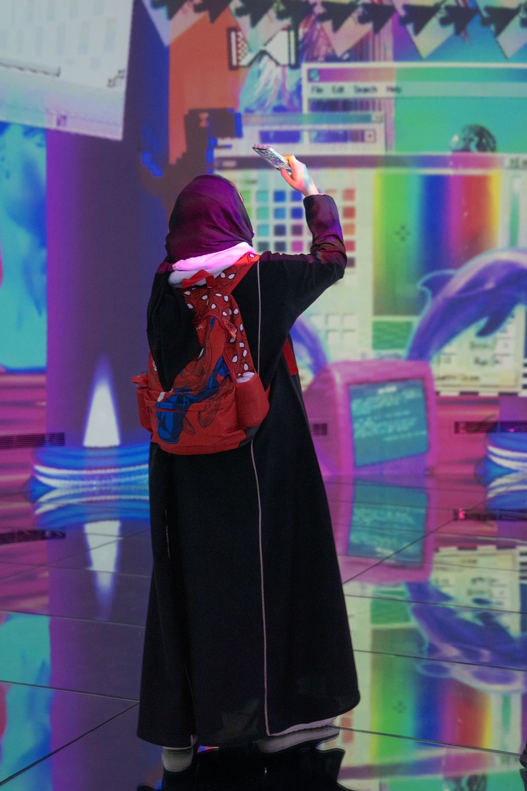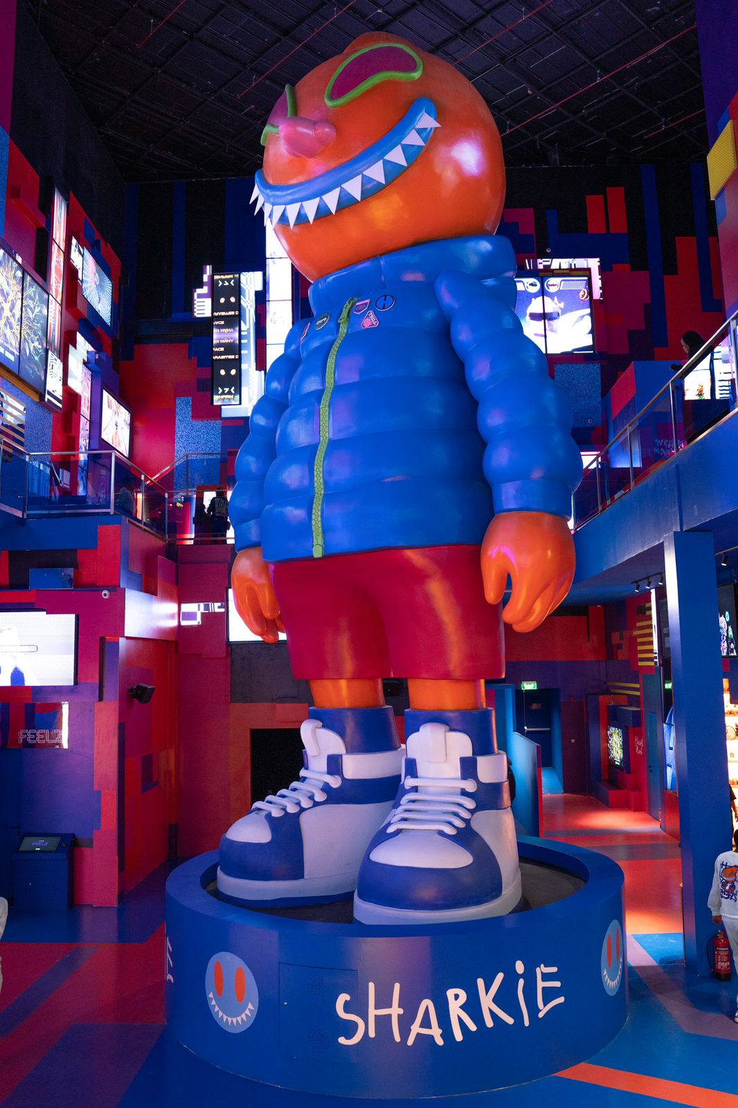 وايضاً هناك غرفه عازلة للصوت يتم تصميم حذاء خاص بهم عن طريق الصوت، ومن خلال هذه الشخصية، يستكشف الزوار العالم الافتراضي ويتفاعلون مع بعضهم البعض، وفي نفس المنطقة يوجد هناك قبة بزاوية 360 درجة، وعبارة عن اطول عرض غنائي وموسيقي بنفس الوقت عن طريق البروجكتر.