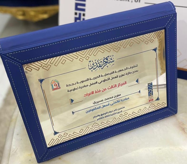 حقق سعادة الأستاذ مفرح بن محمد عسيري المركز الثالث في جائزة "تعزيز" التابعة لجمعية الفيصلية الخيرية النسوية لتمكين العمل التطوعي في دورتها الثانية عن فئة الأفراد على مستوى منطقة مكة المكرمة.