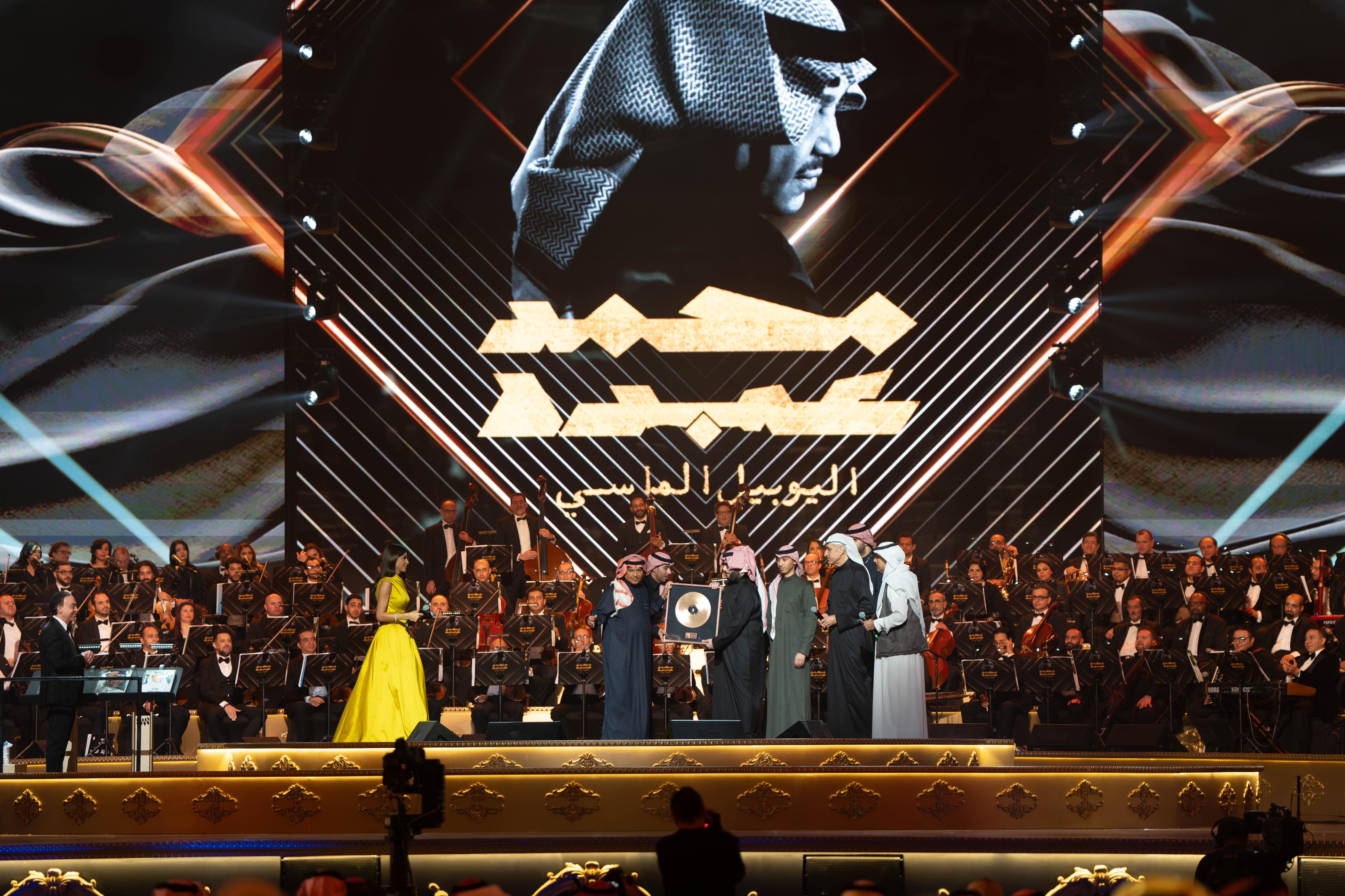 وخلال حفل الليلة الأولى، كرم معالي المستشار تركي ال الشيخ،رئيس مجلس إدارة الهيئة العامة للترفيه الفنان محمد عبده بمناسبة اليوبيل الماسي بأسطوانة من الذهب الخالص، قائلا: "اليوم نكرم فنان سعودي قدير، أسطورة الفن السعودي والعربي"، مؤكدا "أن محمد عبده هو الفنان الوحيد بالعالم الذي غنى لوطنه أكثر من 300 أغنية"، قبل أن يقوم محمد عبده هو الآخر بلفتة إنسانية نبيلة من خلال تبرعه بالأسطوانة الذهبية ضمن الحملة الشعبية لإغاثة الشعب الفلسطيني.