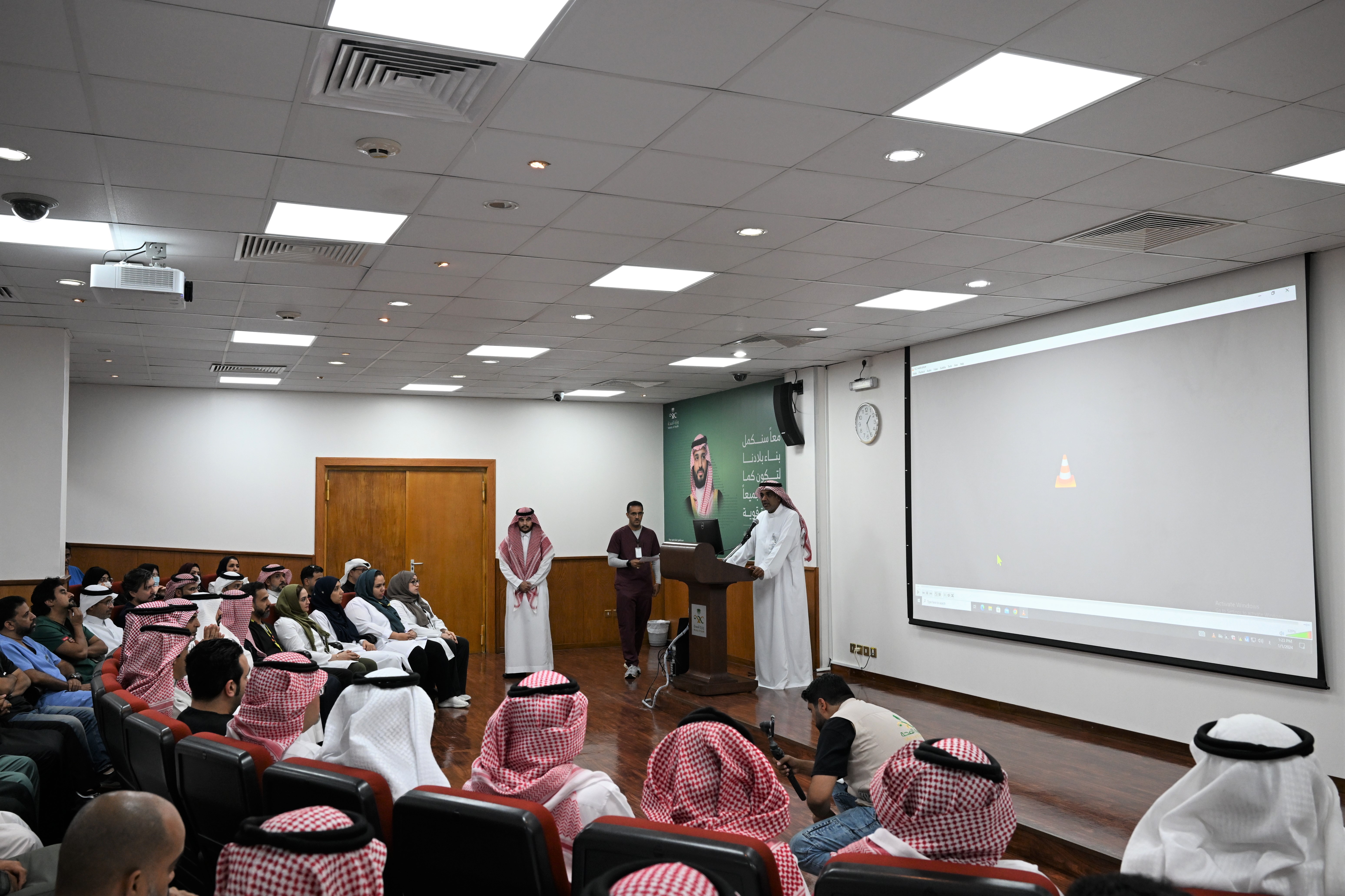 واستمع سموّه لشرح عن أبرز المشاريع التطويرية والتجهيزات الطبية والعلاجية والخدمات المقدمة للعناية بالمرضى, إضافة للمشاريع المنجزة والمشاريع الجاري العمل عليها ضمن خطط التحول المؤسسي لوزارة الصحة.