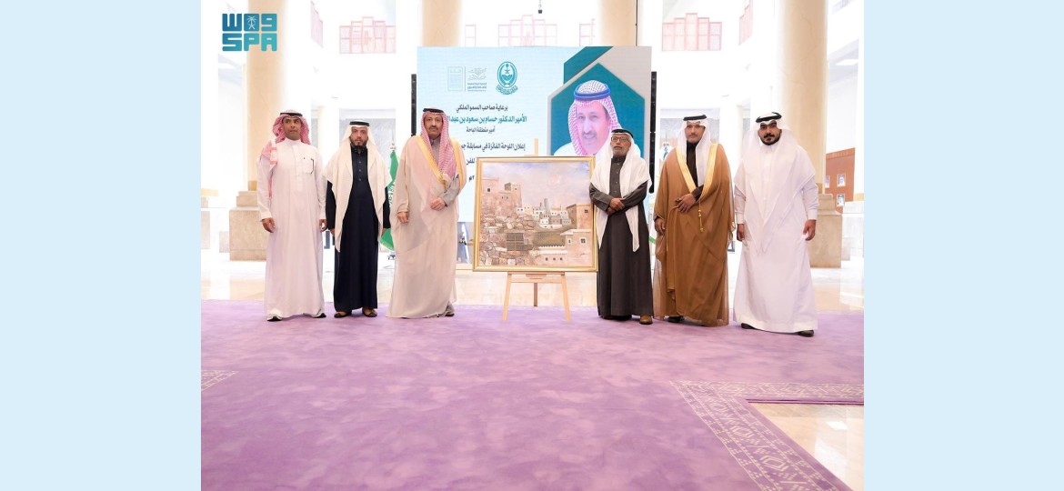 واستمع سموه إلى شرح من البيضاني عن المسابقة التي هدفت لإبراز معالم المنطقة العمرانية والقرى التراثية وهويتها السياحية.