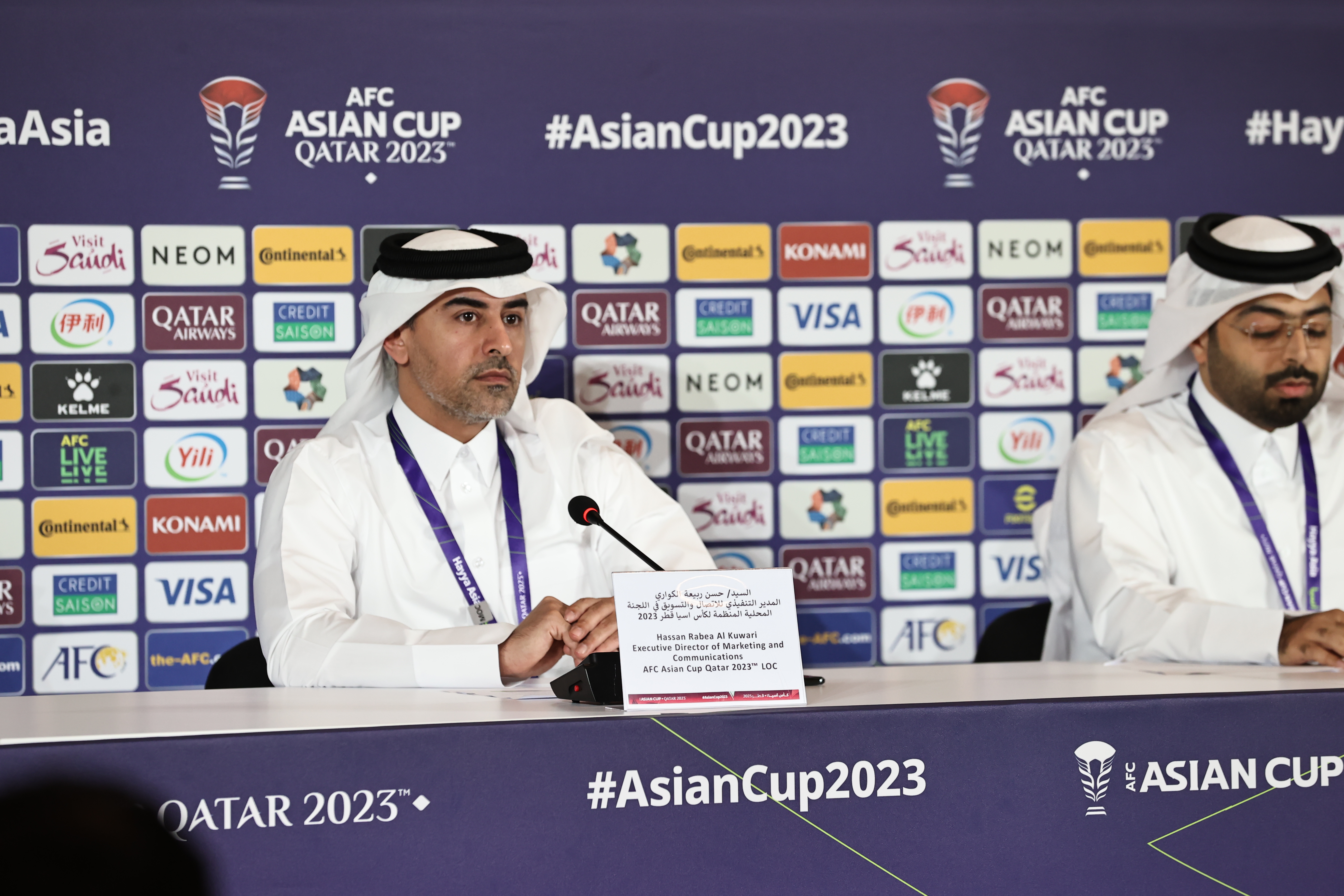وأكد حسن الكواري المدير التنفيذي للاتصال والتسويق في اللجنة المنظمة لكأس آسيا AFC قطر 2023، أن قطر في كامل الجاهزية لاستضافة درة البطولات القارية للمرة الثالثة في تاريخها والترحيب بالمشجعين من أنحاء المنطقة والعالم، جاء ذلك خلال المؤتمر الصحفي الذي عقد اليوم في المركز الإعلامي الرئيسي للبطولة . فبراير 2024.