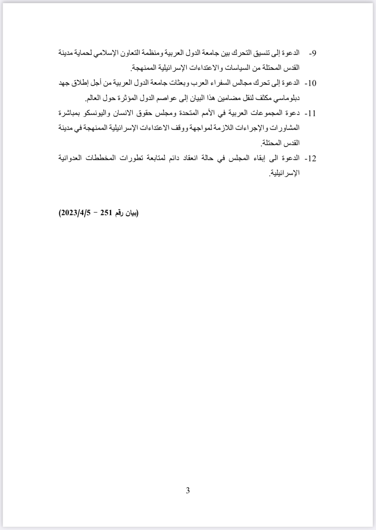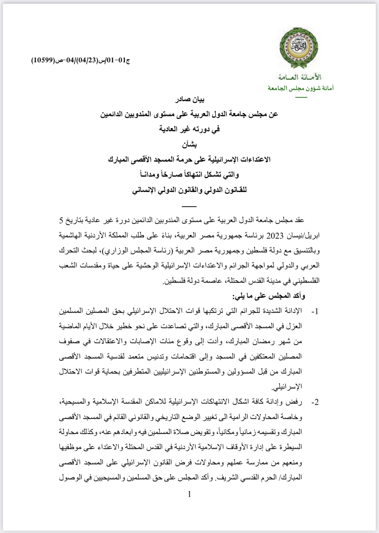 ونقل جمال رشدي المتحدث الرسمي باسم الأمين العام عن أبو الغيط دعوته للمجتمع الدولي، ممثلاً في الدول الأعضاء في مجلس الأمن، التحرك بسرعة من أجل دفع إسرائيل لوقف هذا التصعيد الخطير، الذي يُنذر بإشعال الموقف في الأراضي الفلسطينية المحتلة وفيما يلي نص البيان: