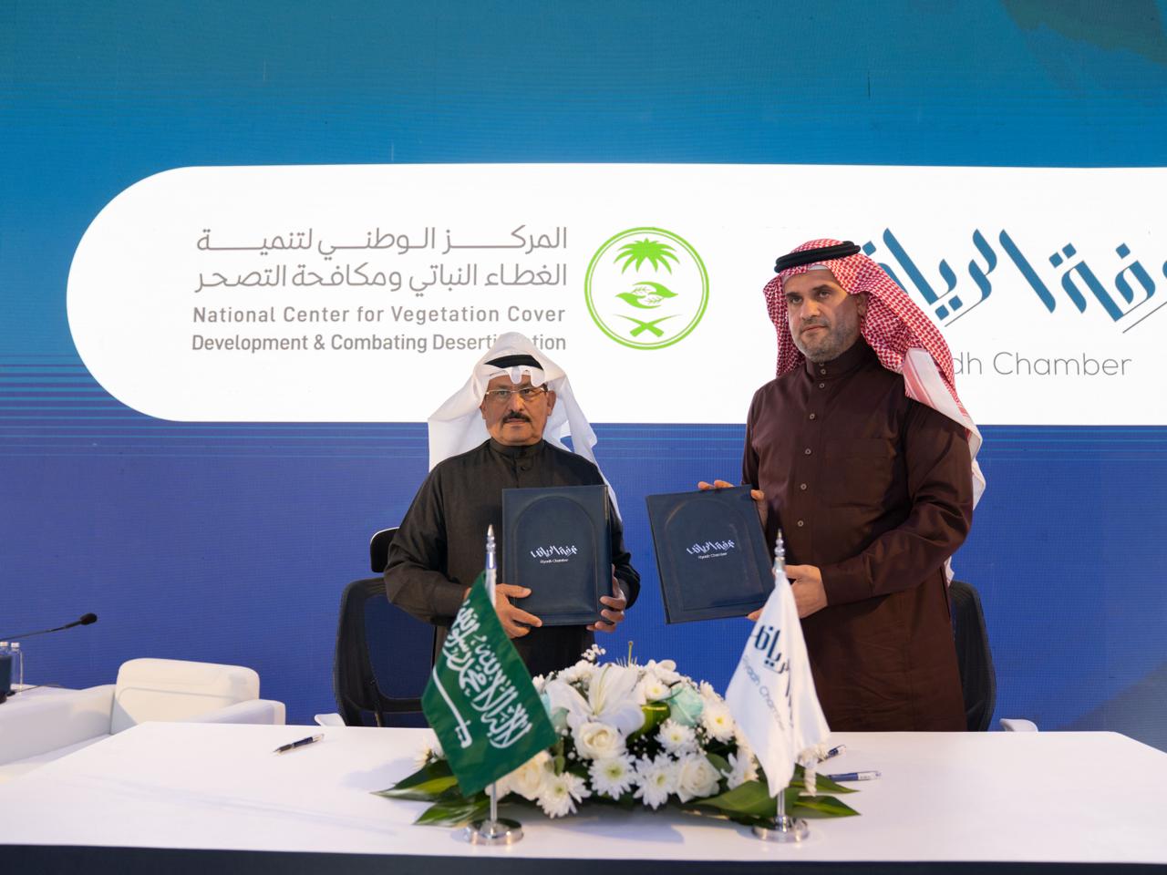 وقع المركز الوطني لتنمية الغطاء النباتي ومكافحة التصحر مذكرة تعاون مع غرفة الرياض، بهدف نشر ثقافة التشجير، وتفعيل دور القطاع الخاص على أرض الواقع ليصبح فعالًا وذا أثر ملموس في التشجير وتمكينه لتنمية الغطاء النباتي وزيادة الرقعة الخضراء، وذلك لتحقيق مستهدفات التشجير ضمن مبادرة السعودية الخضراء.