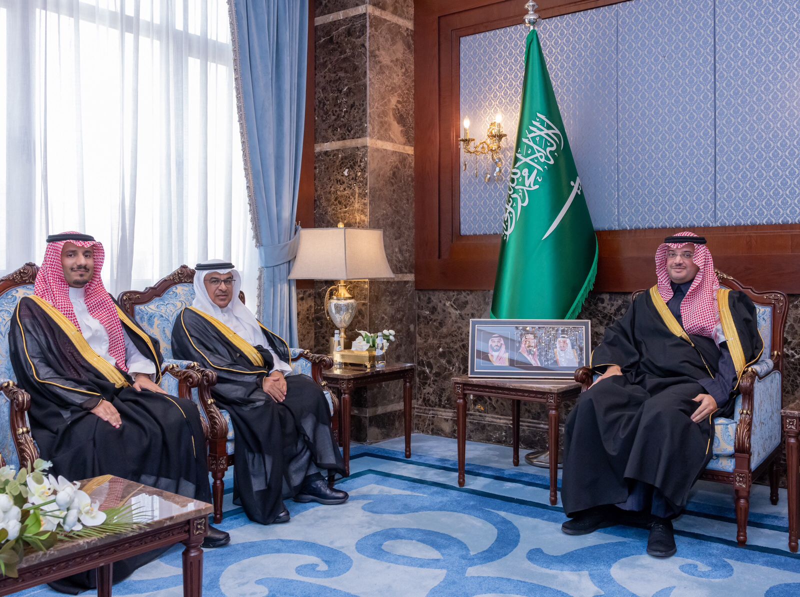 استقبل صاحب السمو الملكي الأمير سعود بن طلال بن بدر محافظ الأحساء بمكتب سموّه بمقر المحافظة اليوم " الثلاثاء "، الرئيس السابق للمؤسسة العامة للري الدكتور فؤاد ال الشيخ مبارك المعين حديثًا رئيسًا تنفيذيًا لشركة المياه الوطنية، و المهندس محمد بن زيد أبوحيد المكلف حديثًا برئاسة المؤسسة.