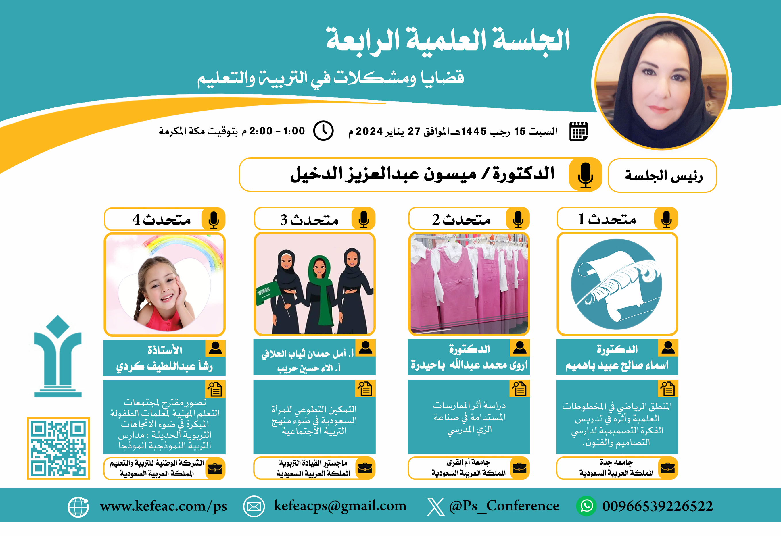 تنطلق فعاليات المؤتمر الدولي الرابع للتعليم في الوطن العربي "مشكلات وحلول" في يوم السبت 15 رجب 1445هـ الموافق 27 يناير 2024م بفندق راديسون بلو السلام في مدينة جدة بمشاركة كوكبة متميزة من الأكاديميين والباحثين وطلاب الدراسات العليا من المملكة العربية السعودية ودول مجلس التعاون وبعض الدول العربية تحت مظلة الهيئة العامة للمعارض والمؤتمرات.