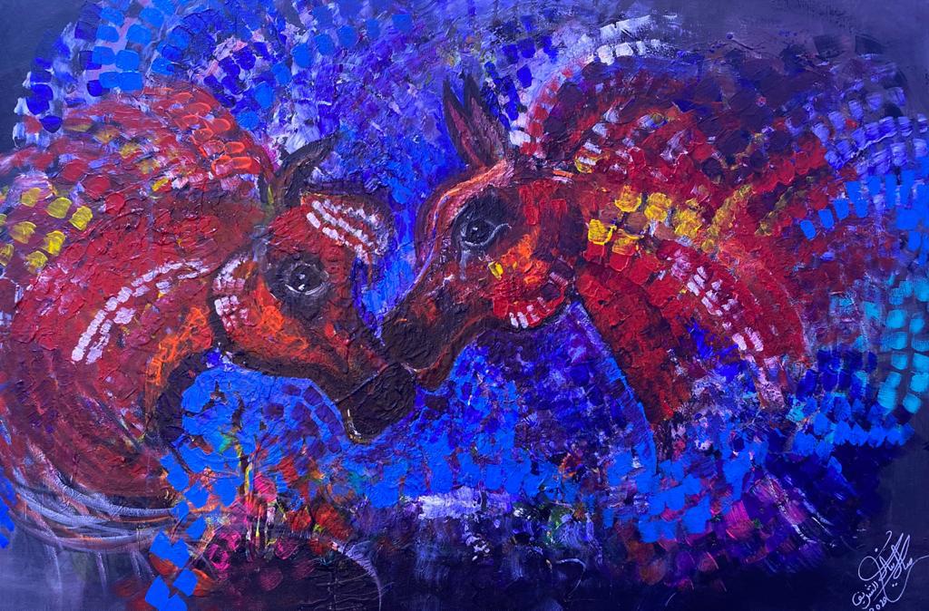 حينها لفتت الأنظار هذه الشابة الطموحة لا سيما عبر منصات وسائل التواصل الاجتماعي، ولم تنته دهشتنا معها هنا، فقد امتلكت موهبة أخرى، لا تقل جمالا عن موهبتها الشعرية، وهو فن الرسم التشكيلي، والذي أبدعت فيه وهي بذلك واءمت بين الجمال في الشعر والرسم واللذان يعتبران توأم مثل الروح للجسد لا ينفصلان.