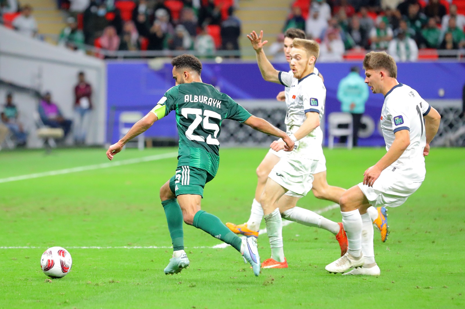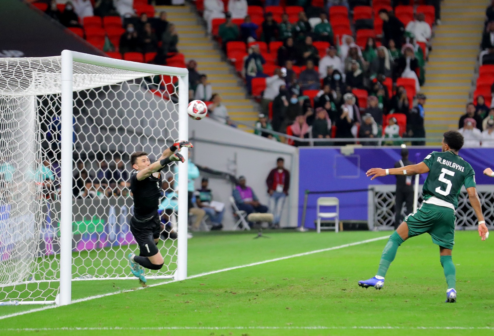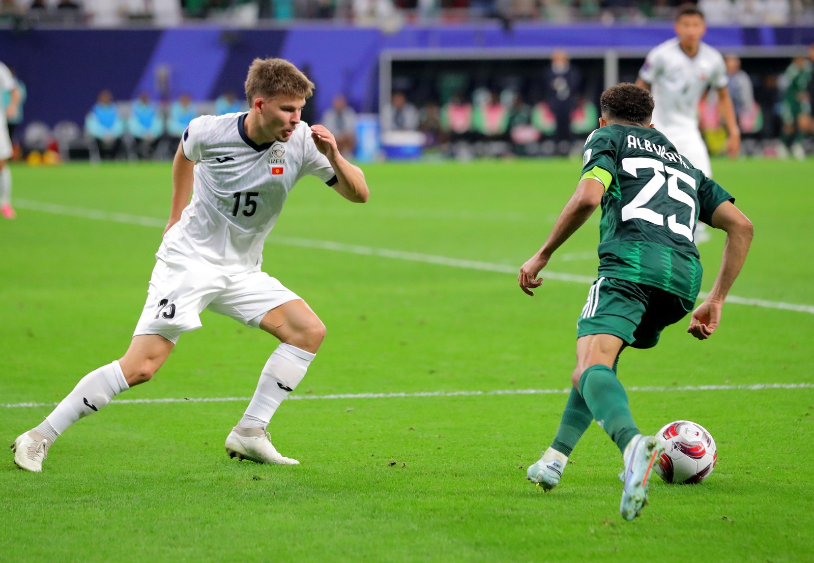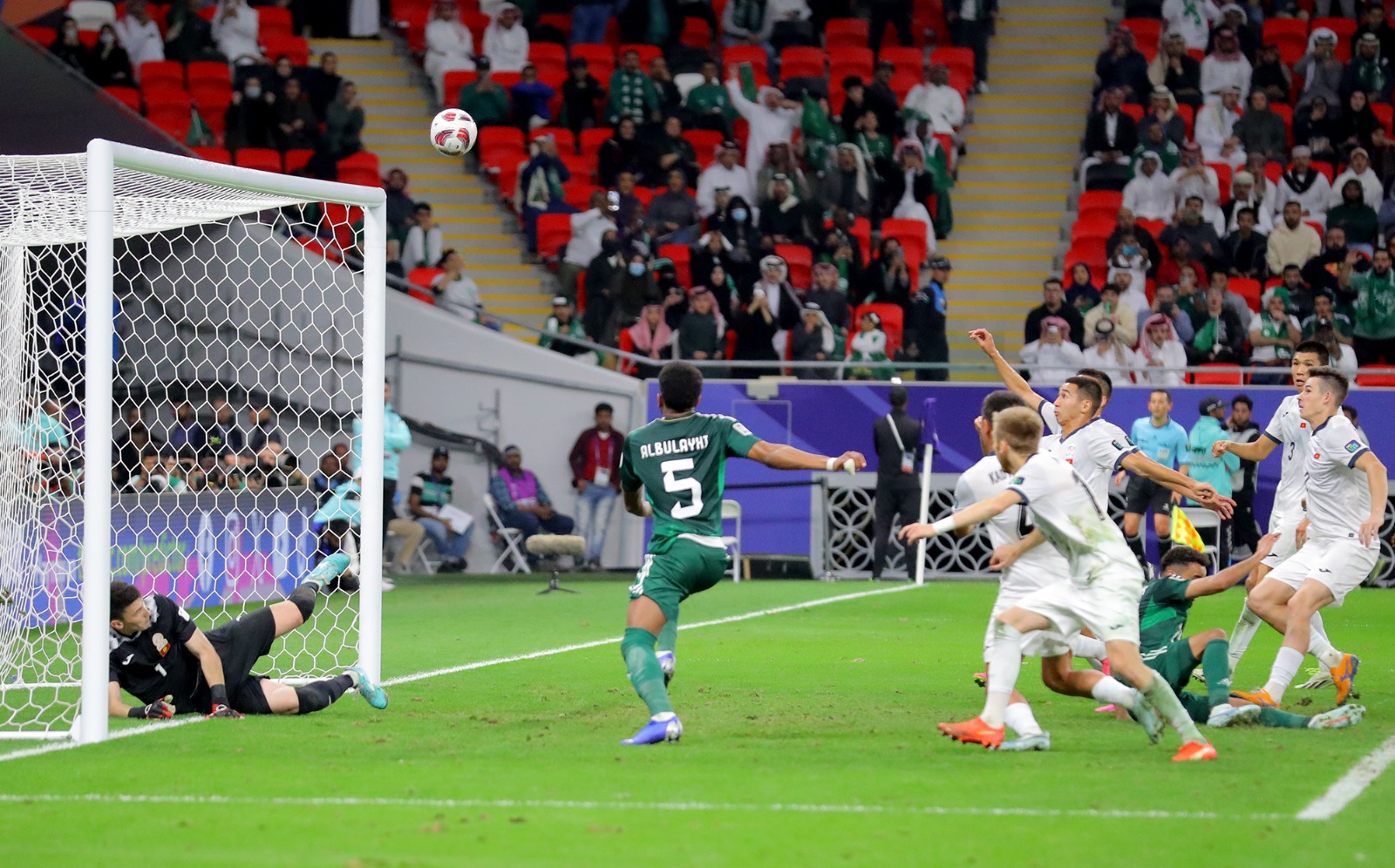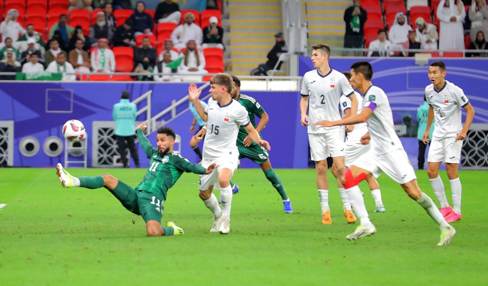 سجل الهدف الأول محمد كنو مع الدقيقة (35) وأضاف فيصل الغامدي الهدف الثاني مع الدقيقة (84) من المباراة التي شهدت إشهار البطاقة الحمراء مرتين للاعبي منتخب قيرغستان حيث كان الطرد الأول مع الدقيقة 9 من نصيب ايزار ايكماتوف فيما كان الطرد الثاني من نصيب كاي ميرك مع الدقيقة (52).