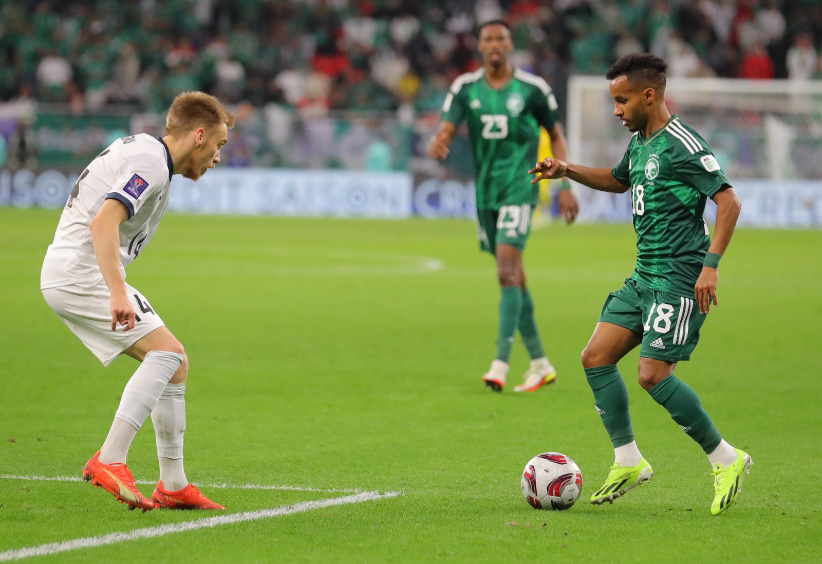 حقق المنتخب السعودي الأول لكرة القدم، تأهله للدور الـ 16 من نهائيات أمم آسيا 2023 المقامة حالياً في قطر، بفوزه على منتخب قيرغستان بهدفين دون مقابل، في المباراة التي جرت مساء اليوم الأحد ضمن مباريات المجموعة السادسة وذلك على أرضية استاد أحمد بن علي.