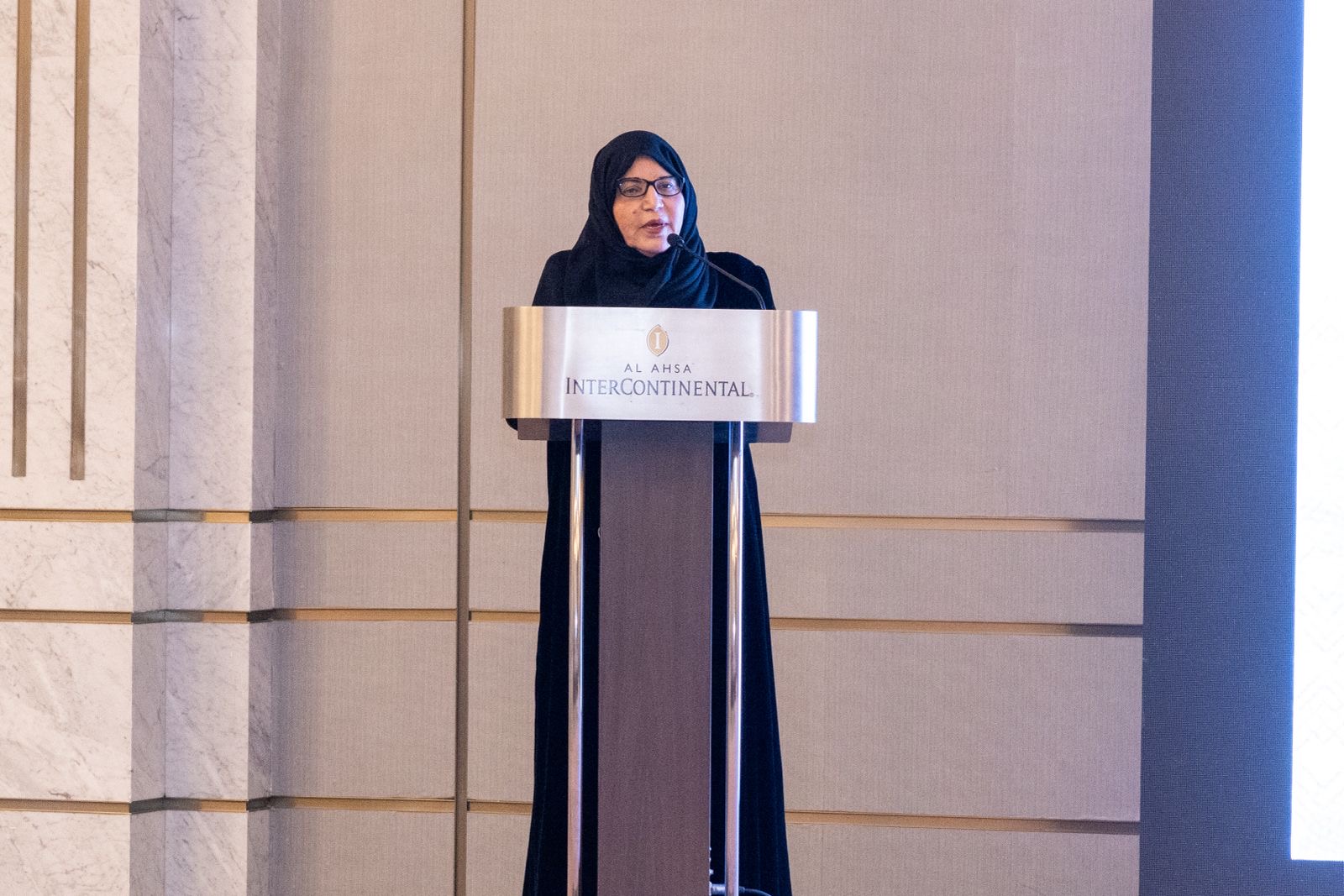واستهل الحفل بالسلام الملكي، ثم تلاوة عطرة من القرآن الكريم، تلى ذلك كلمة ترحيبية من رئيسة جمعية فتاة الأحساء التنموية الخيرية الأستاذة لطيفة العفالق ، حيث رحبت في كلمتها بسعادة وكيل المحافظة مقدمة شكرها لسمو محافظ الأحساء لرعايته حفل الجمعية، ولسعادة وكيل المحافظة حضوره للحفل ولكافة الحضور واستهلت كلمتها بآخر انجاز حصلت عليه الجمعية وهو حصولها على المركز الرابع كوسطاء تمويل متمثلاً في برنامج صنعتي، كما أشادت بدور الجمعية في البرامج الريادية التنموية ودورها في خدمة مستفيدي الجمعية، كما قدمت شكرها لكافة داعمي الجمعية .