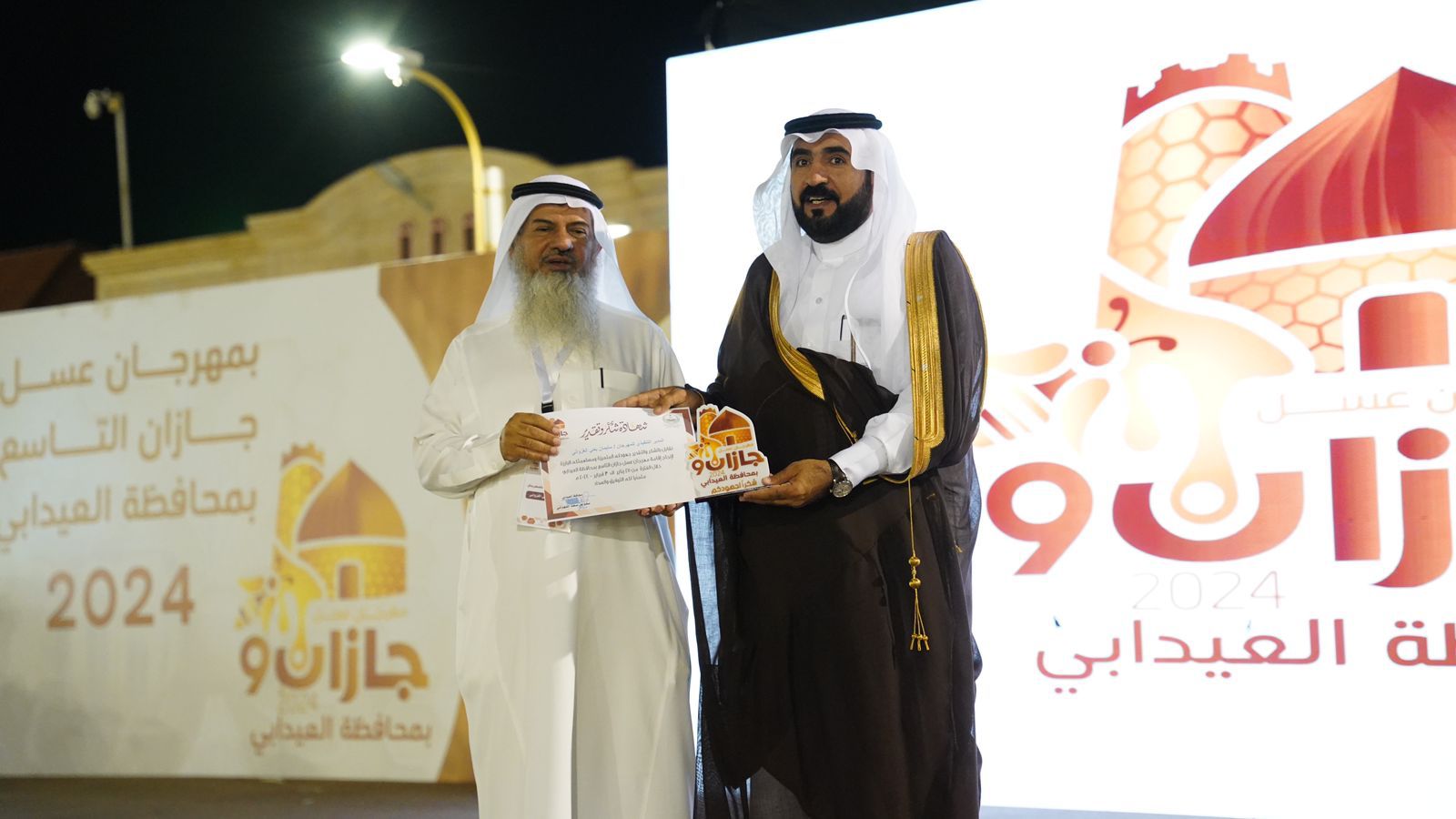 رعى محافظ العيدابي، سفر بن سعد الشهراني، مساء امس السبت الموافق 1445/7/22هـ، ختام فعاليات مهرجان عسل جازان التاسع في نسخته التاسعة بمحافظة العيدابي والذي استمر على مدى عشرة أيام الماضية، والذي شارك فيه 80 نحالاً،