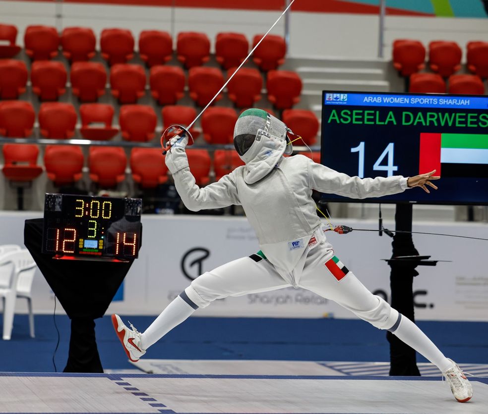 جسدت زينب الحوسني شعار النسخة السابعة من دورة الألعاب للأندية العربية للسيدات؛ (لكل بطل حكاية ترويها الملاعب)، بعدما تألقت أمس، الأحد، برفقة زميلاتها في فريق نادي الشارقة الرياضي للمرأة، باقتناص ذهبية منافسات سلاح "الإيبيه" ضمن منافسات المبارزة في الدورة التي تتواصل حتى 12 فبراير الجاري، بمشاركة 560 لاعبة، يمثلن 63 فريقاً من 15 دولة، ينافسن على ألقاب ثمانية ألعاب أولمبية.