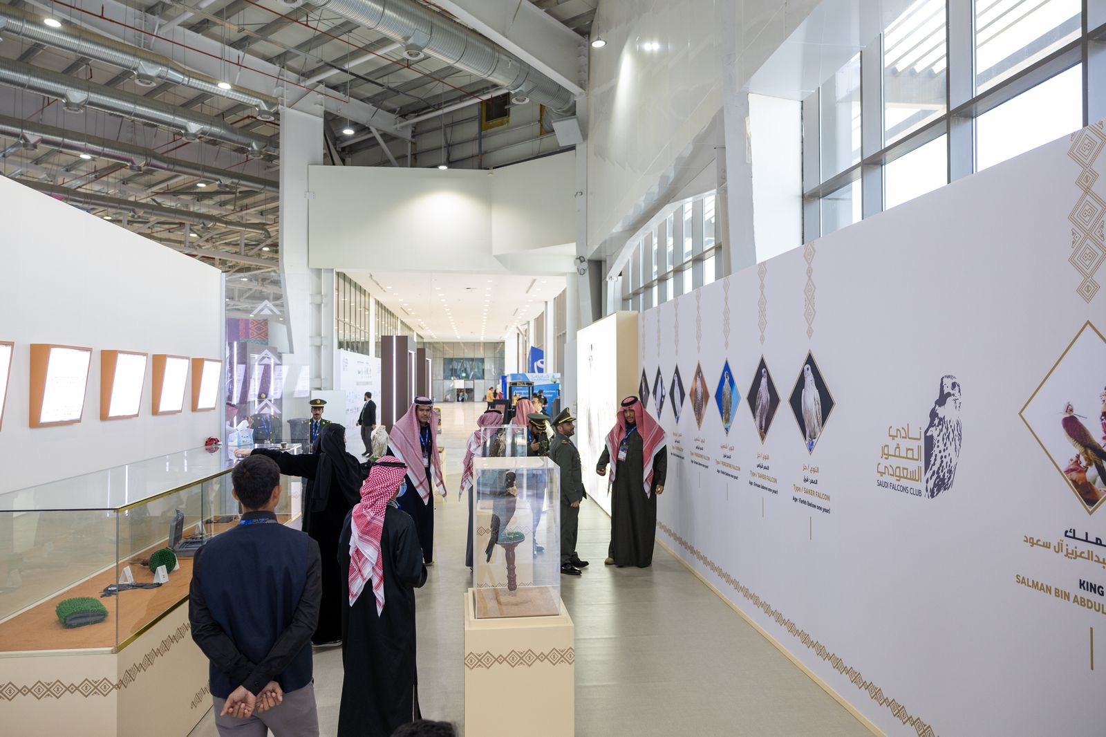 وقدم النادي تعريفًا بإرث الصقارة الأصيل، كما أبرز في معرضٍ للصور العلاقة الوثيقة بين ملوك المملكة العربية السعودية والصقور؛ حيث يزدان جناح النادي بصورٍ للملوك سعود وفيصل وخالد وفهد وعبدالله، والأمير سلطان، والأمير نايف، رحمهم الله جميعًا، وصورة لخادم الحرمين الشريفين الملك سلمان بن عبدالعزيز مع الصقور في إحدى رحلات الصيد.