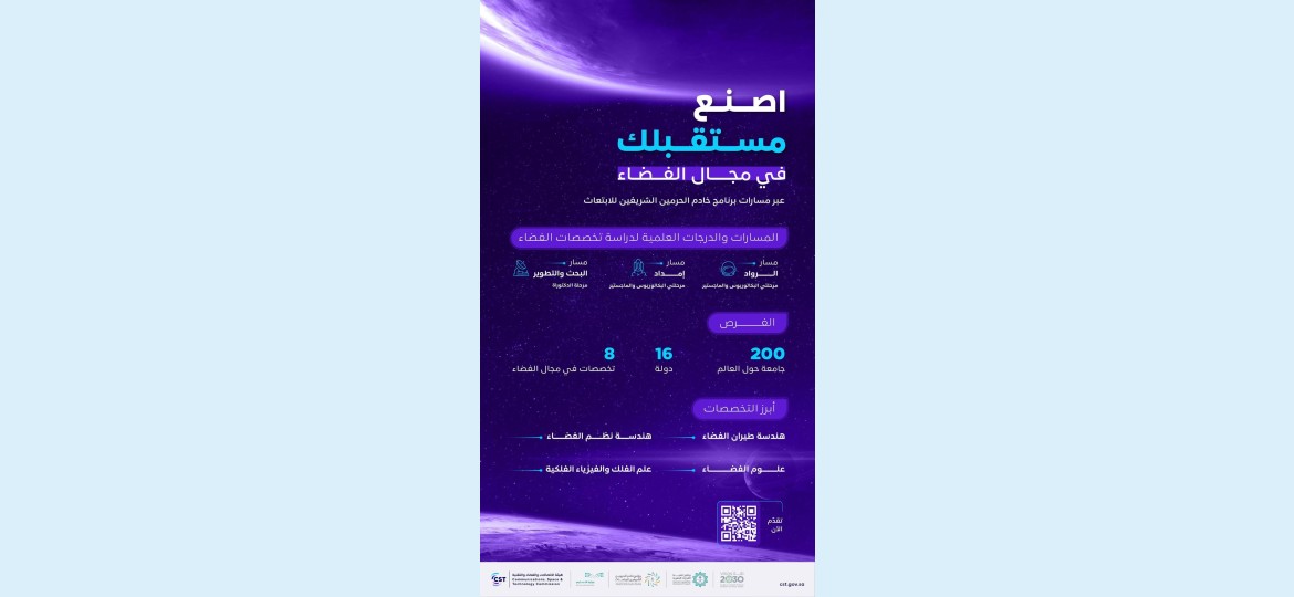 وتدعو الهيئة المهتمين والراغبين بدراسة تخصصات الفضاء واستكشاف علومه وتقنياته إلى التقديم من خلال الرابط: https://moe.gov.sa/scholarship-program/index.html